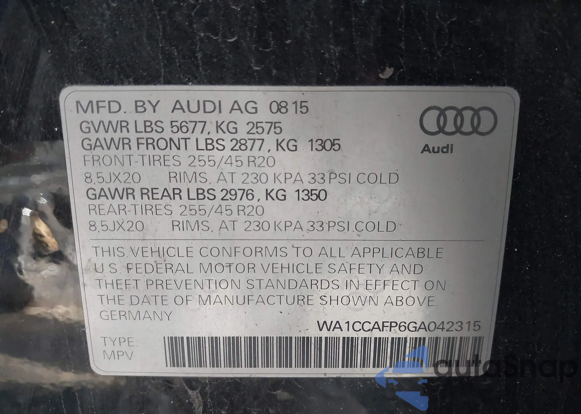 LOT: 28058849 VIN: 4T1BD1FK1FU168612