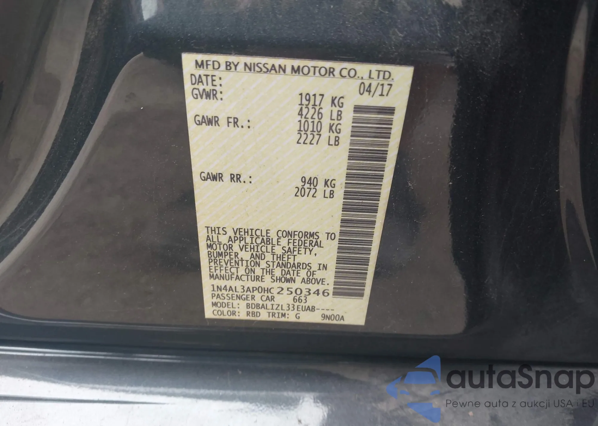 LOT: 43383341 VIN: 1N4AL3AP0HC250346