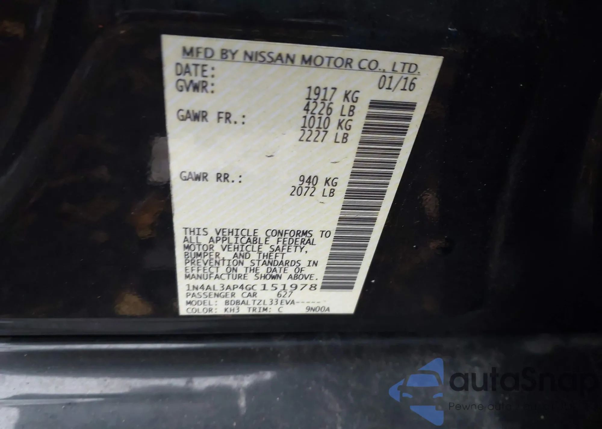LOT: 43555853 VIN: 1N4AL3AP4GC151978