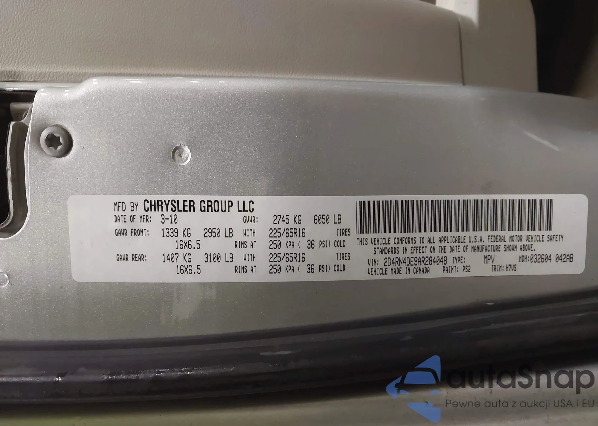 • VIN 2D4RN4DE9AR284048