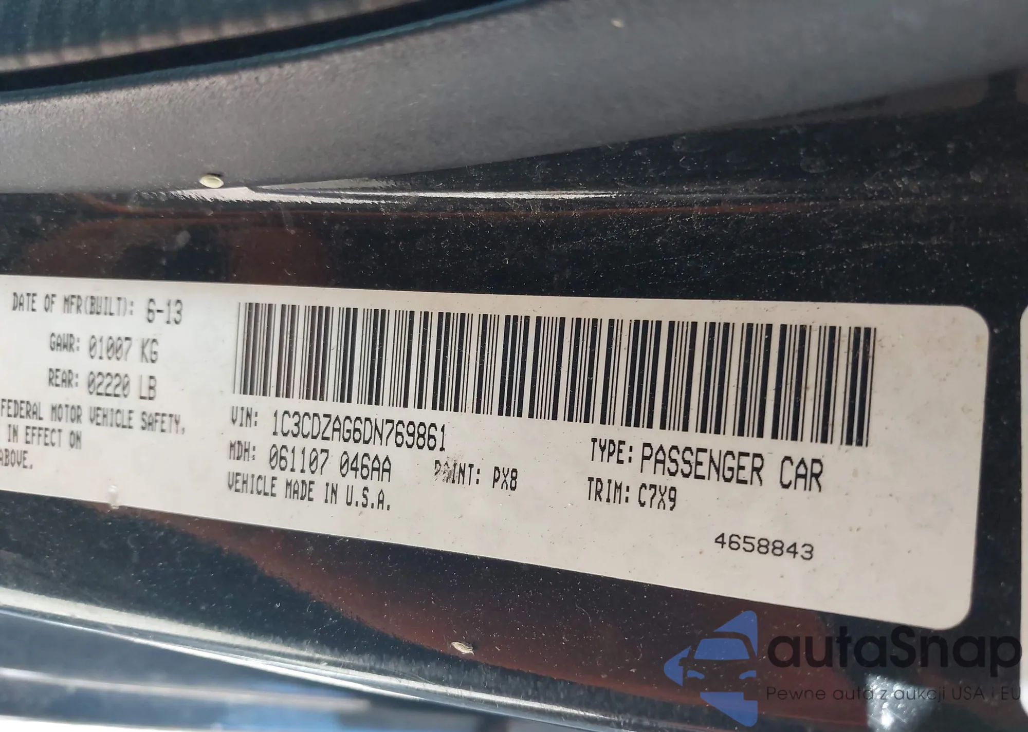 • VIN 1C3CDZAG6DN769861