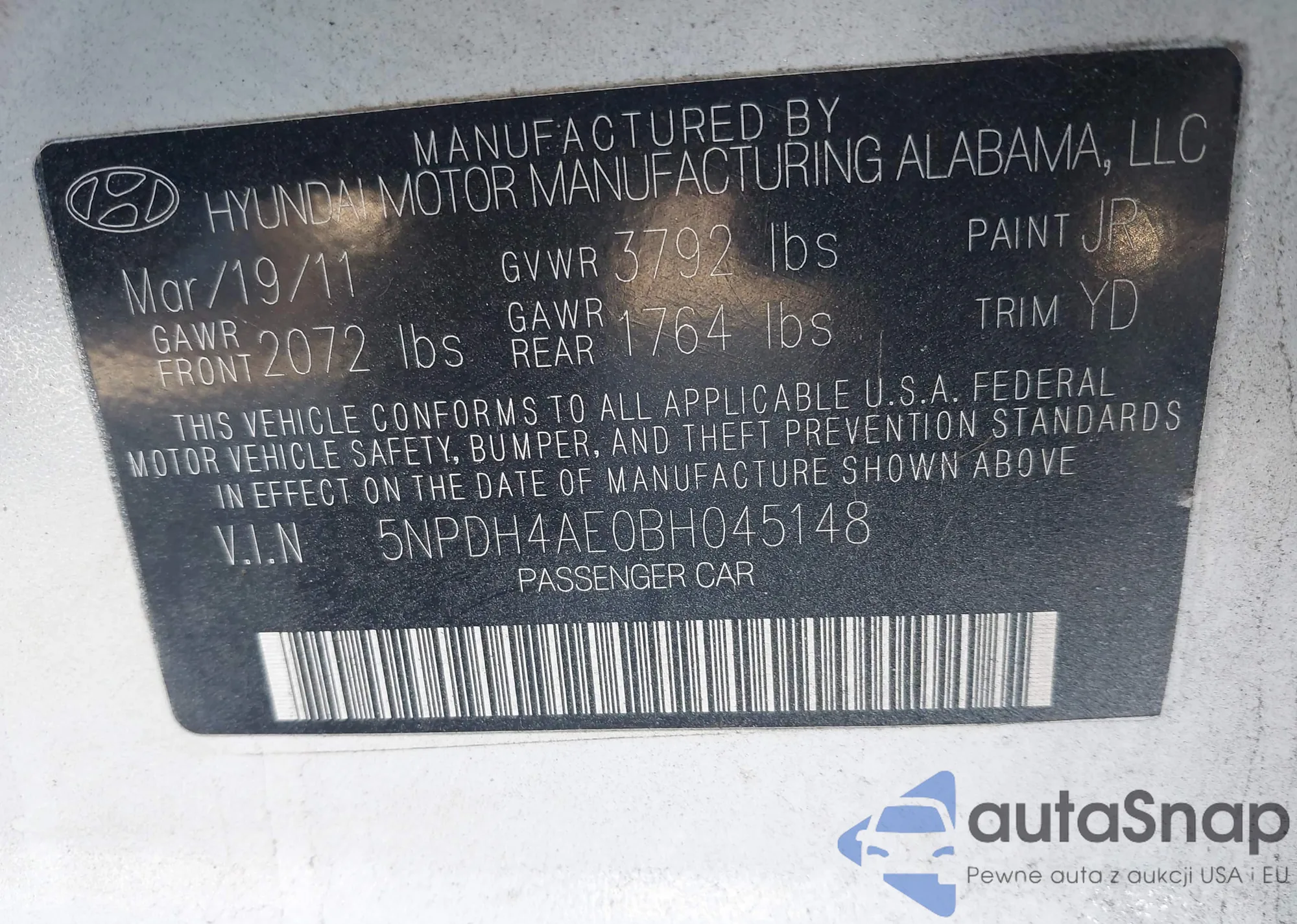 • VIN KMHCT4AEXHU374783
