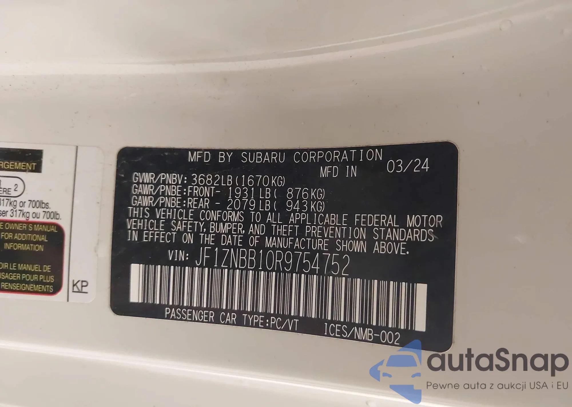 • VIN 4S4BRBAC9C3274833