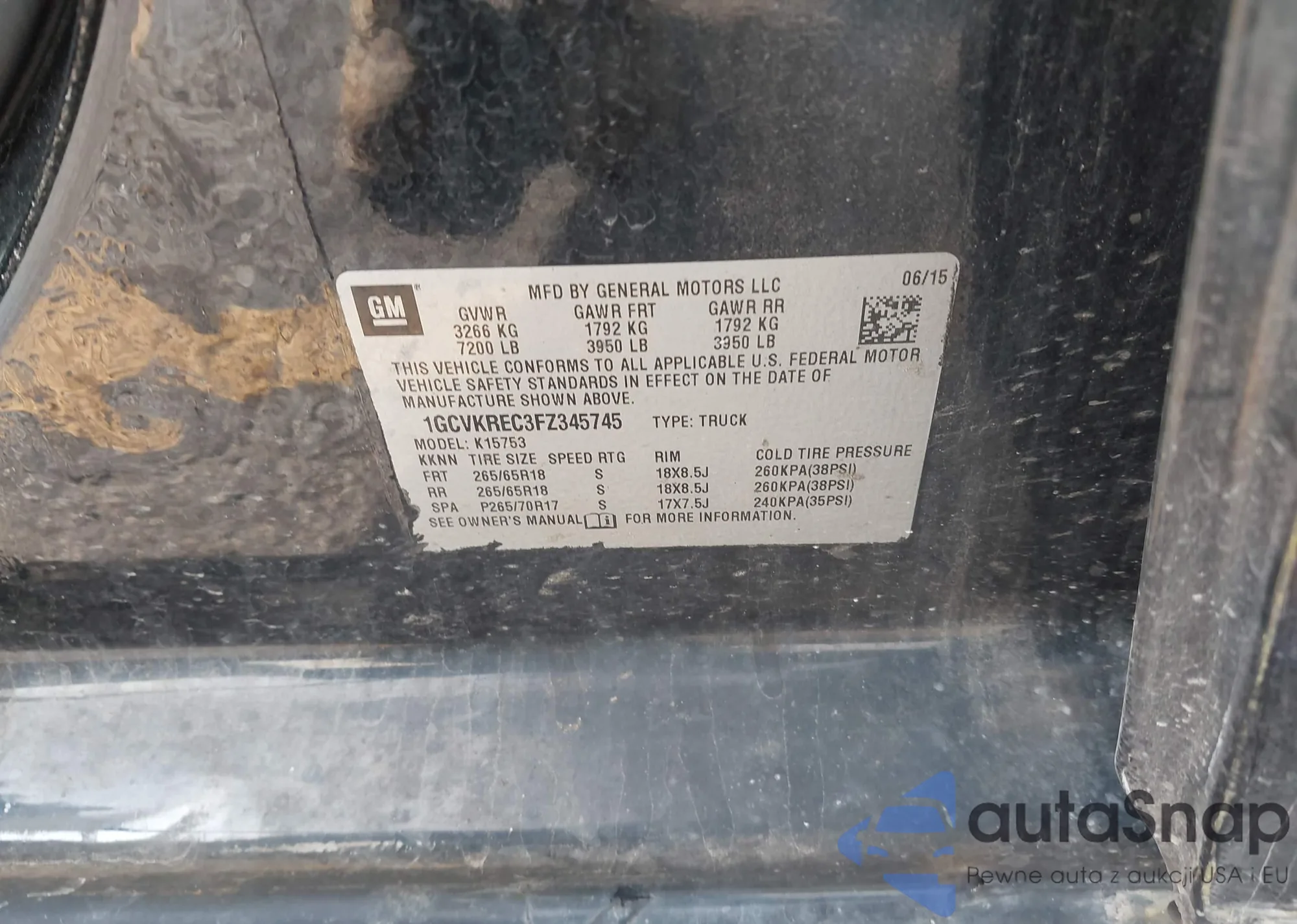 LOT: 43252178 VIN: 1GCVKREC3FZ345745