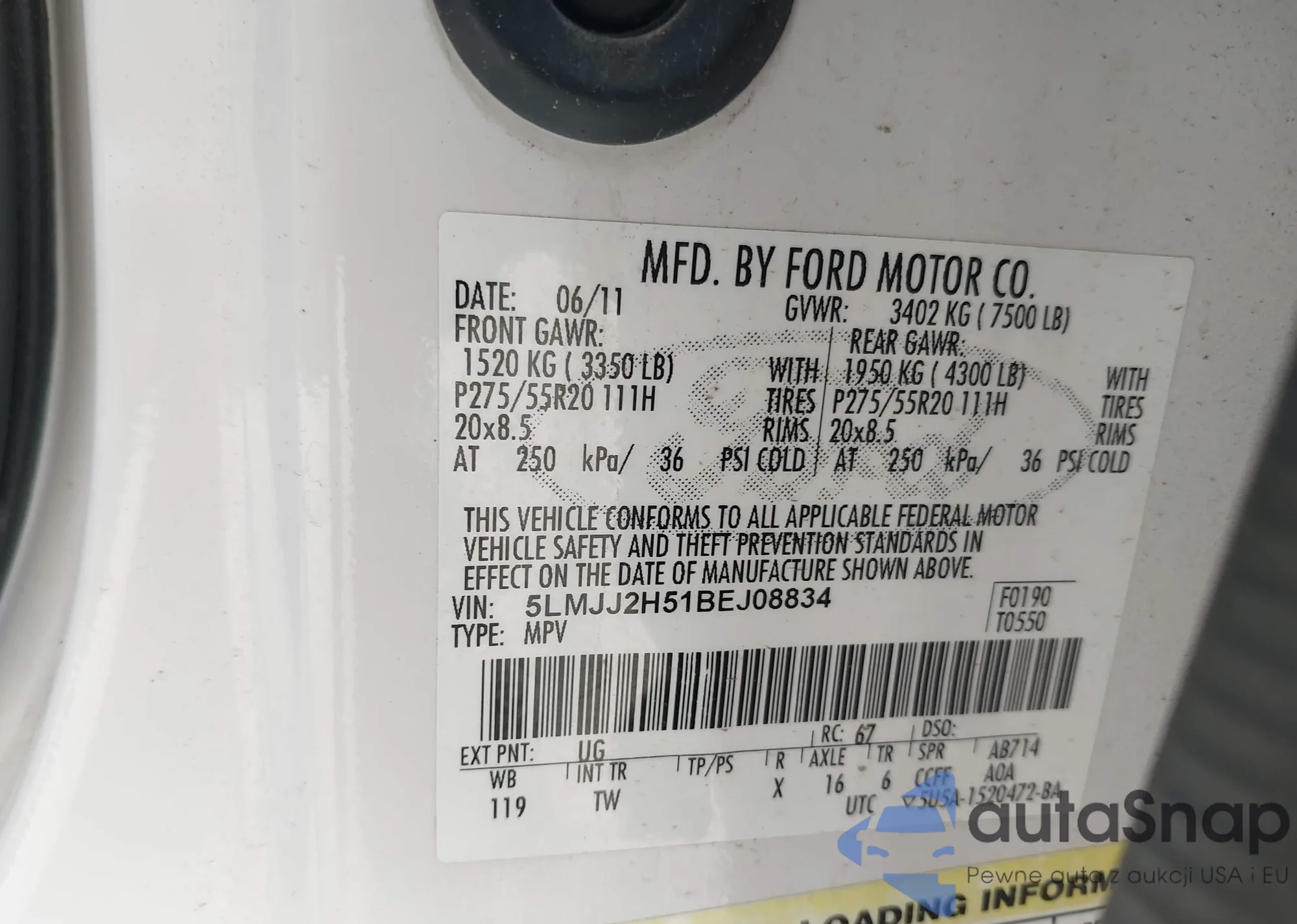 • VIN 5LMJJ2H51BEJ08834