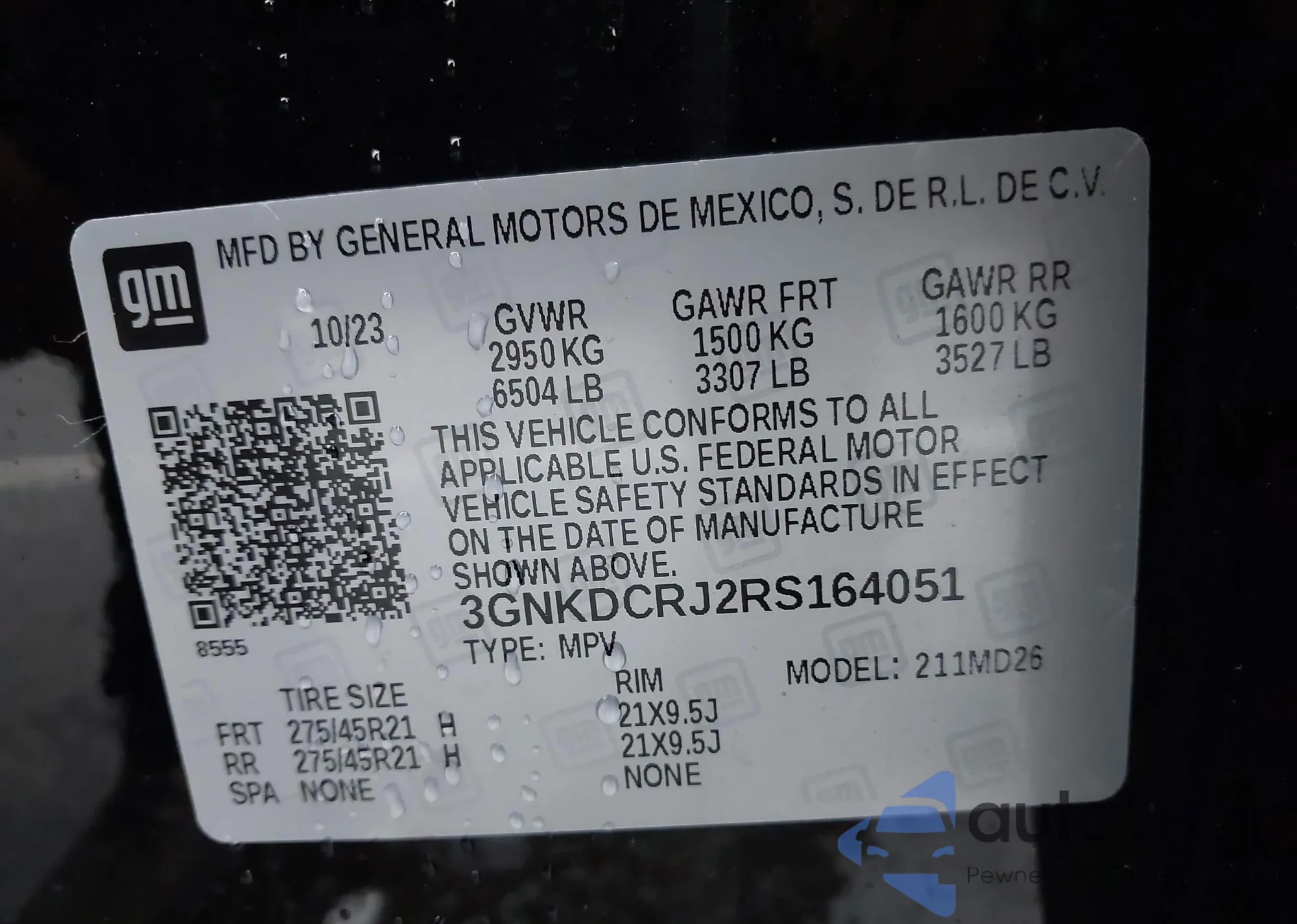 • VIN 3GNKDCRJ2RS164051