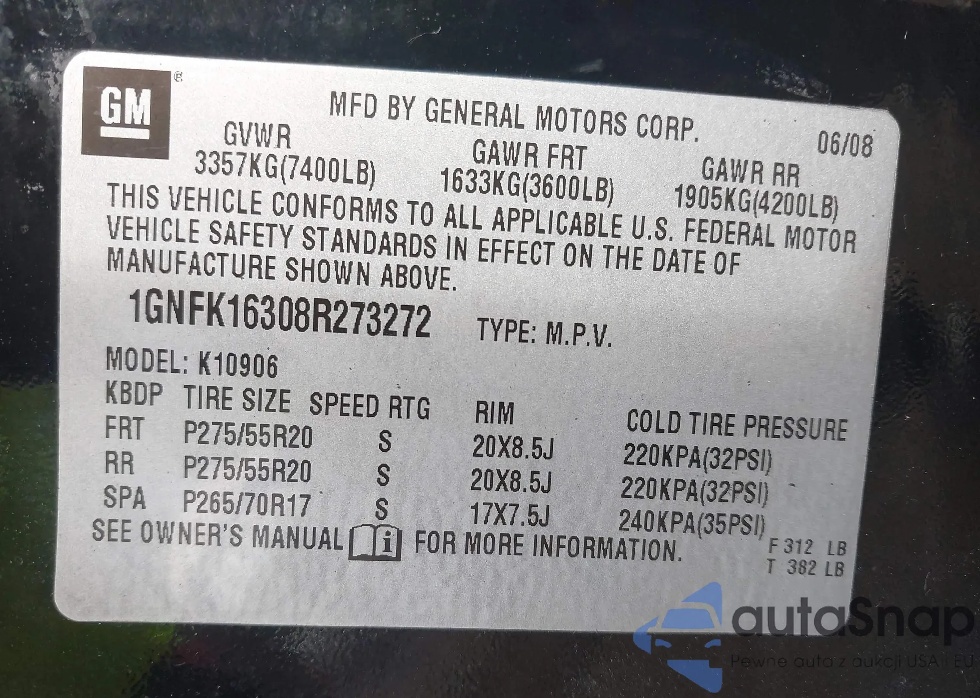 • VIN 1GNFK16308R273272