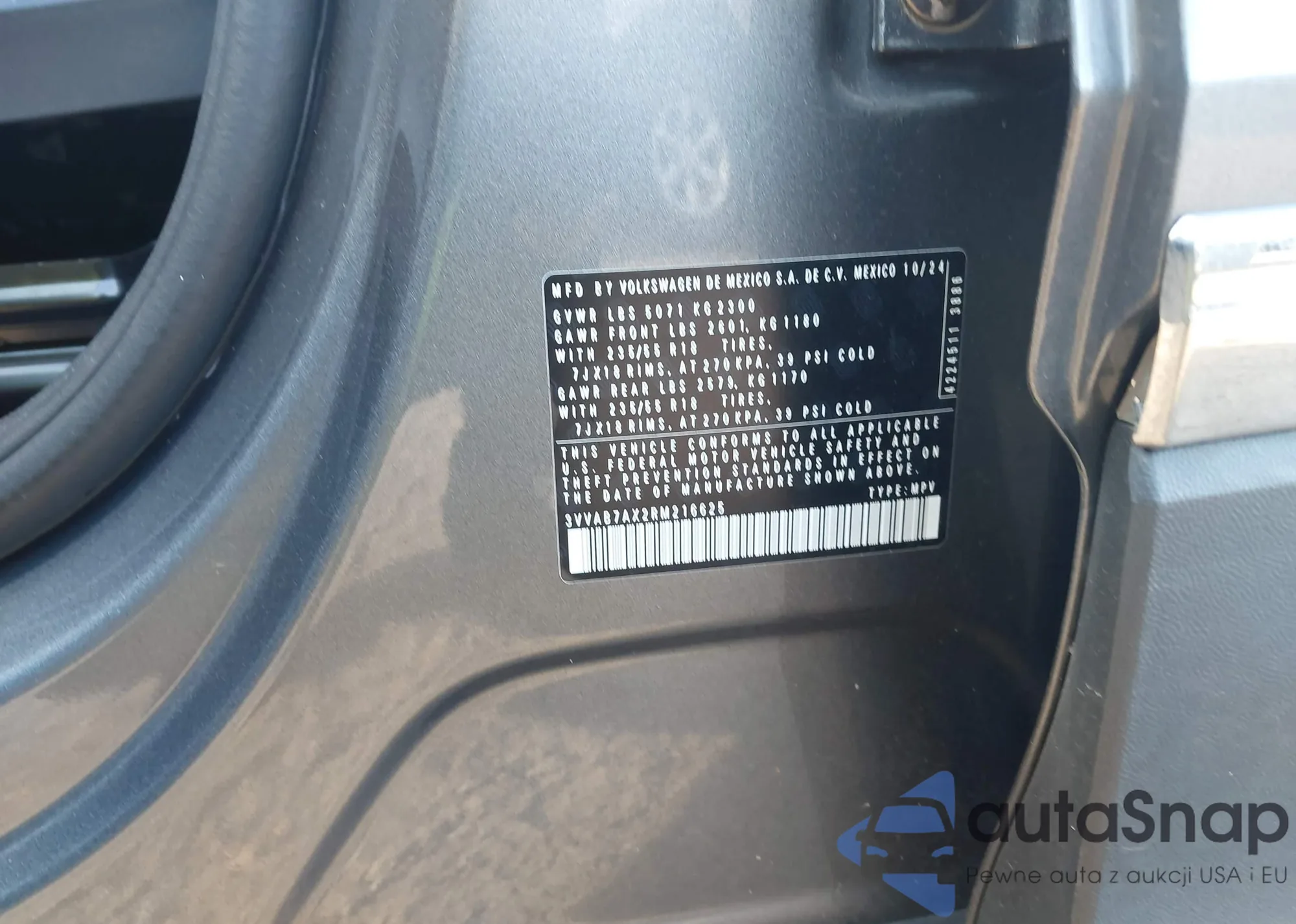 • VIN 3VVAB7AX2RM216625