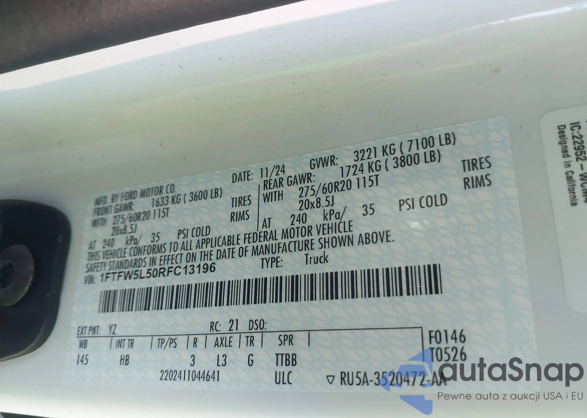 LOT: 43639515 VIN: 1FTEW1E51LFB28392