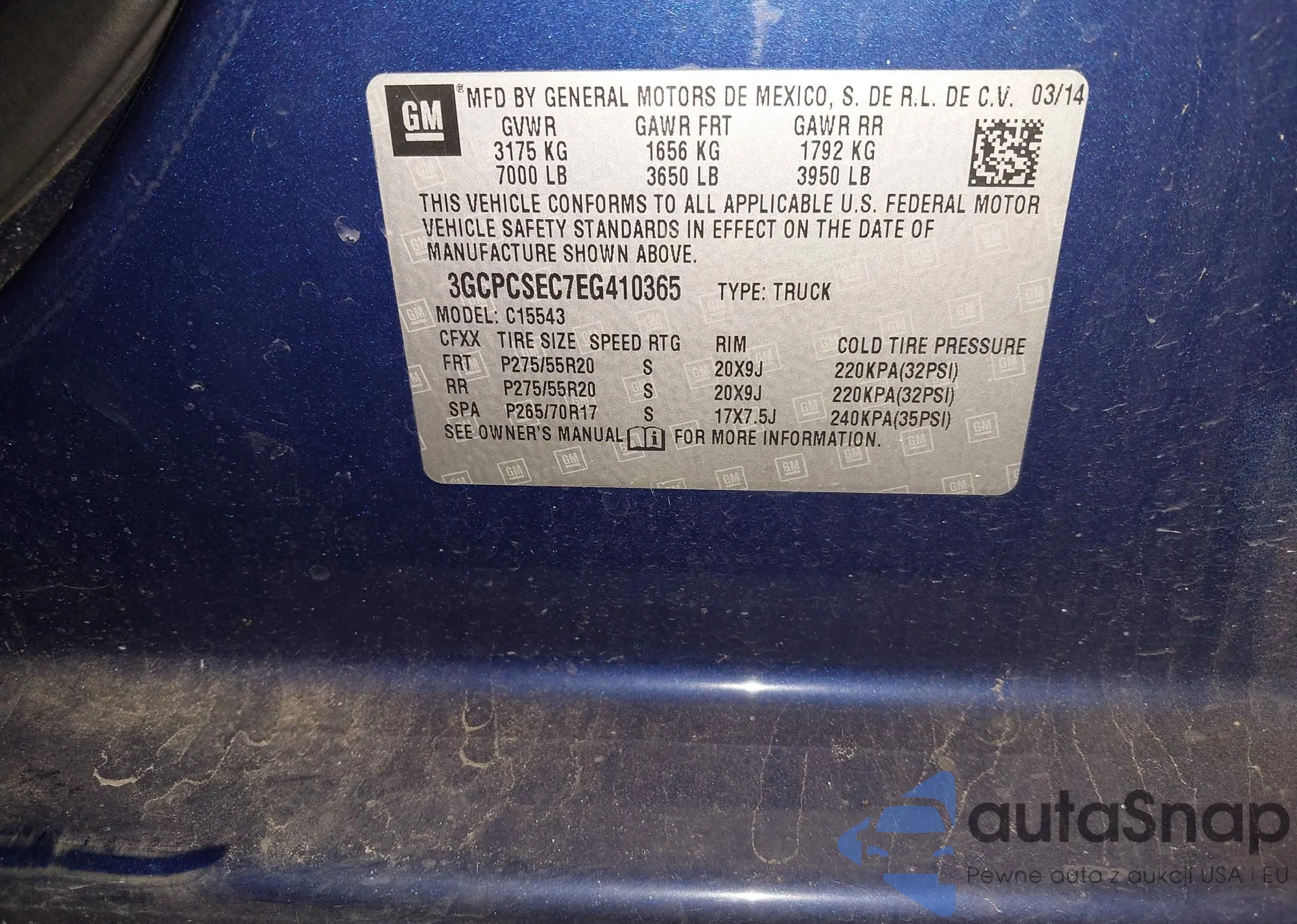 • VIN 3GCPCSEC7EG410365
