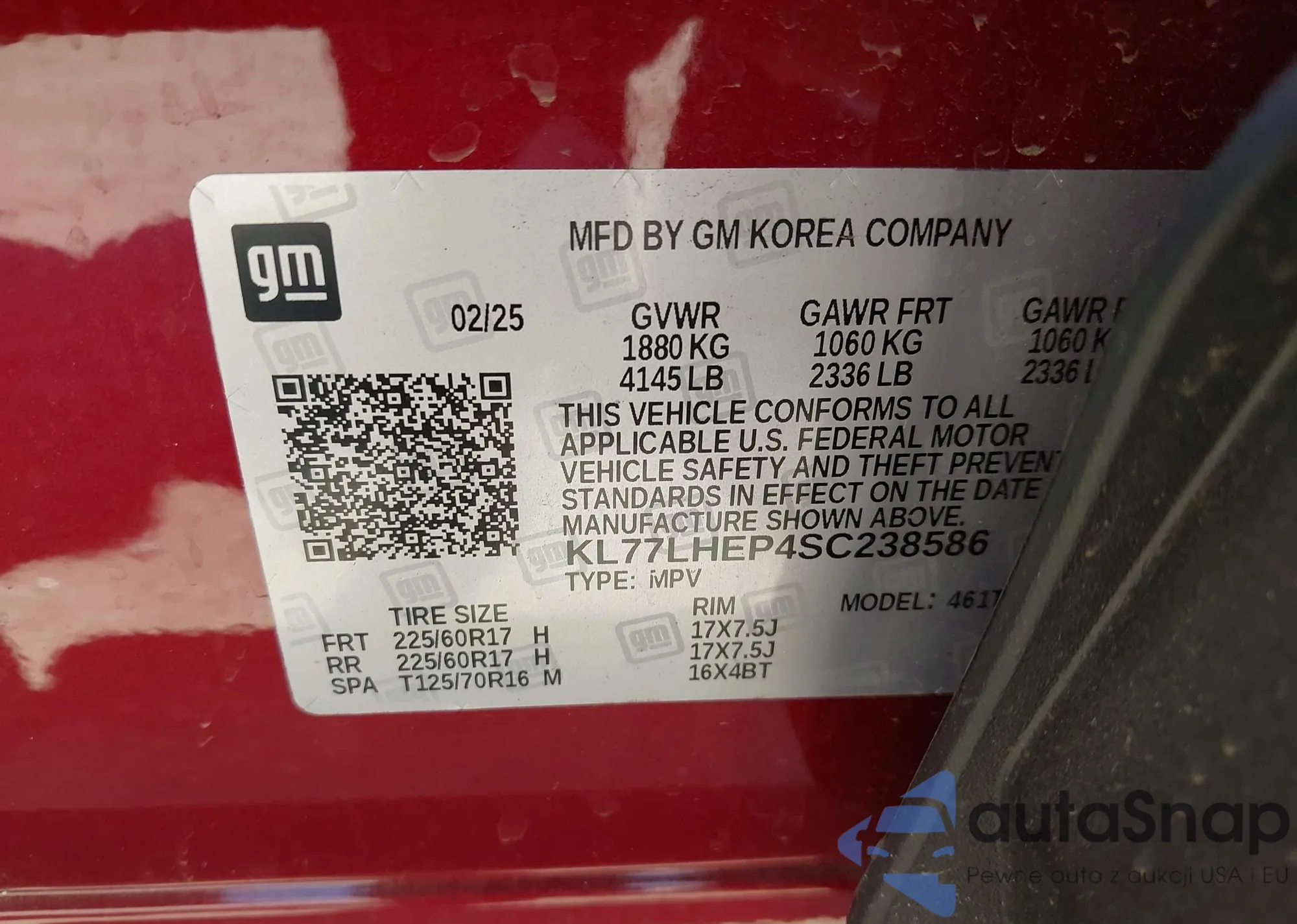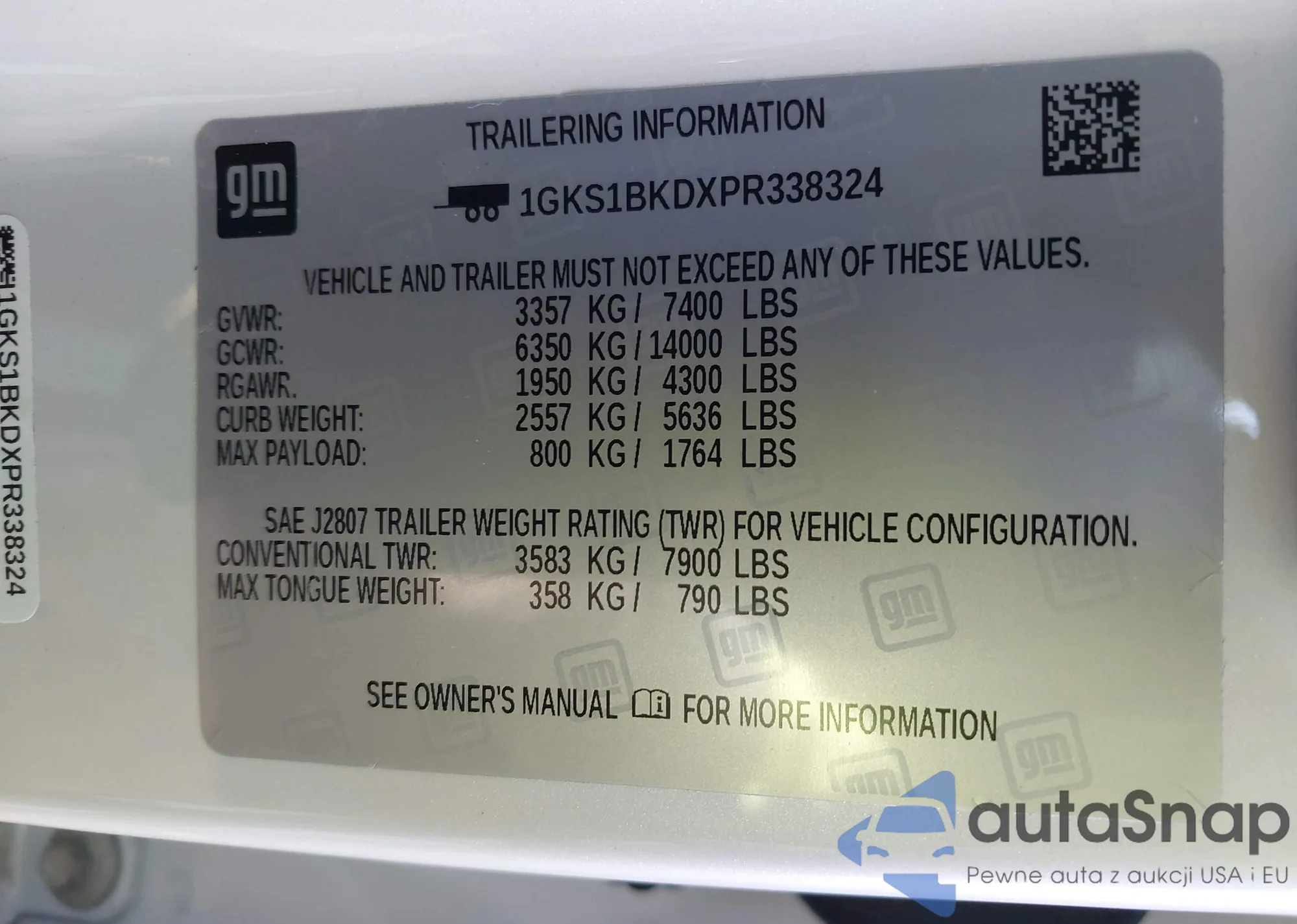 LOT: 43595291 VIN: 1GKS1BKDXPR338324