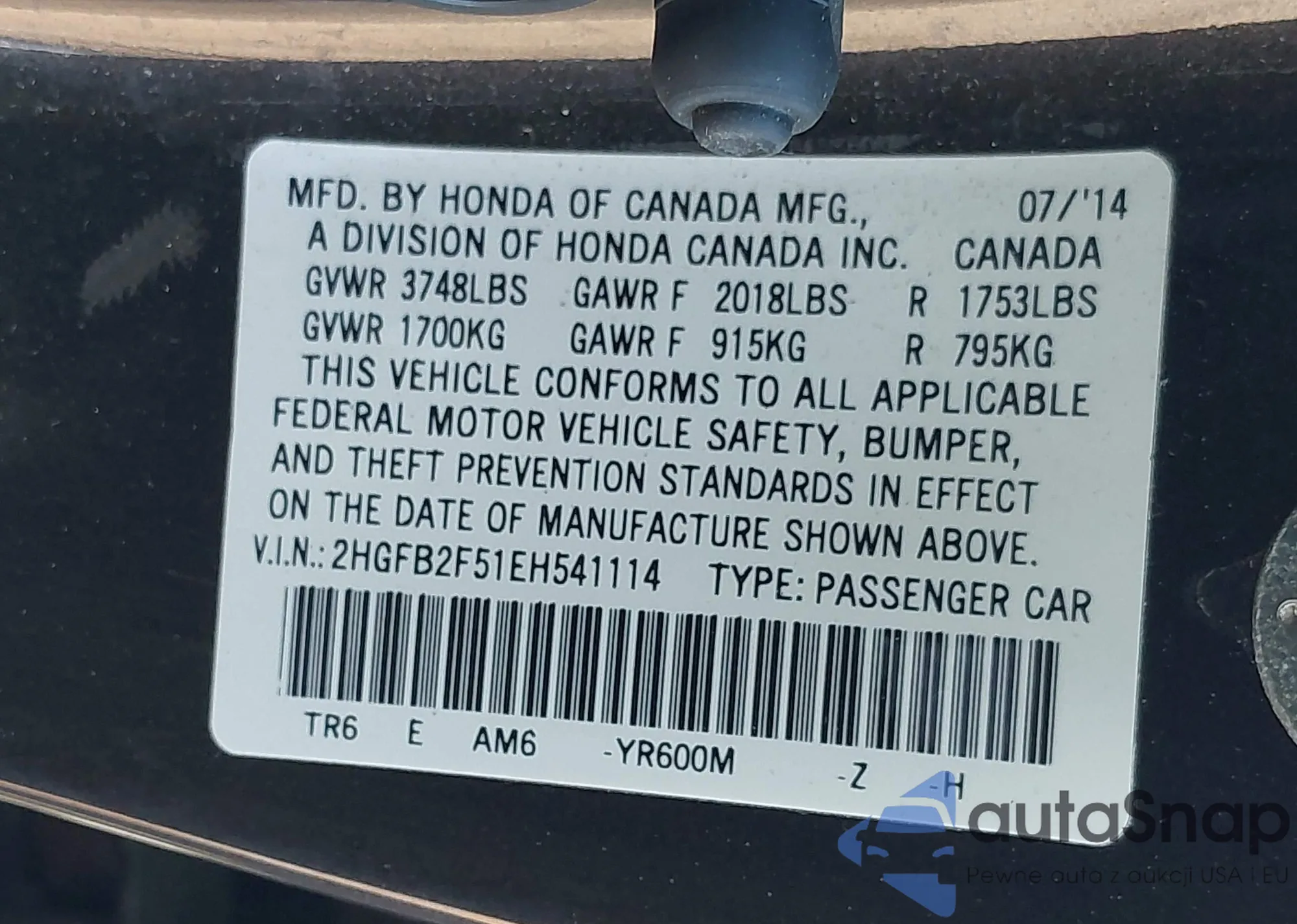 • VIN 2HGFB2F51EH541114
