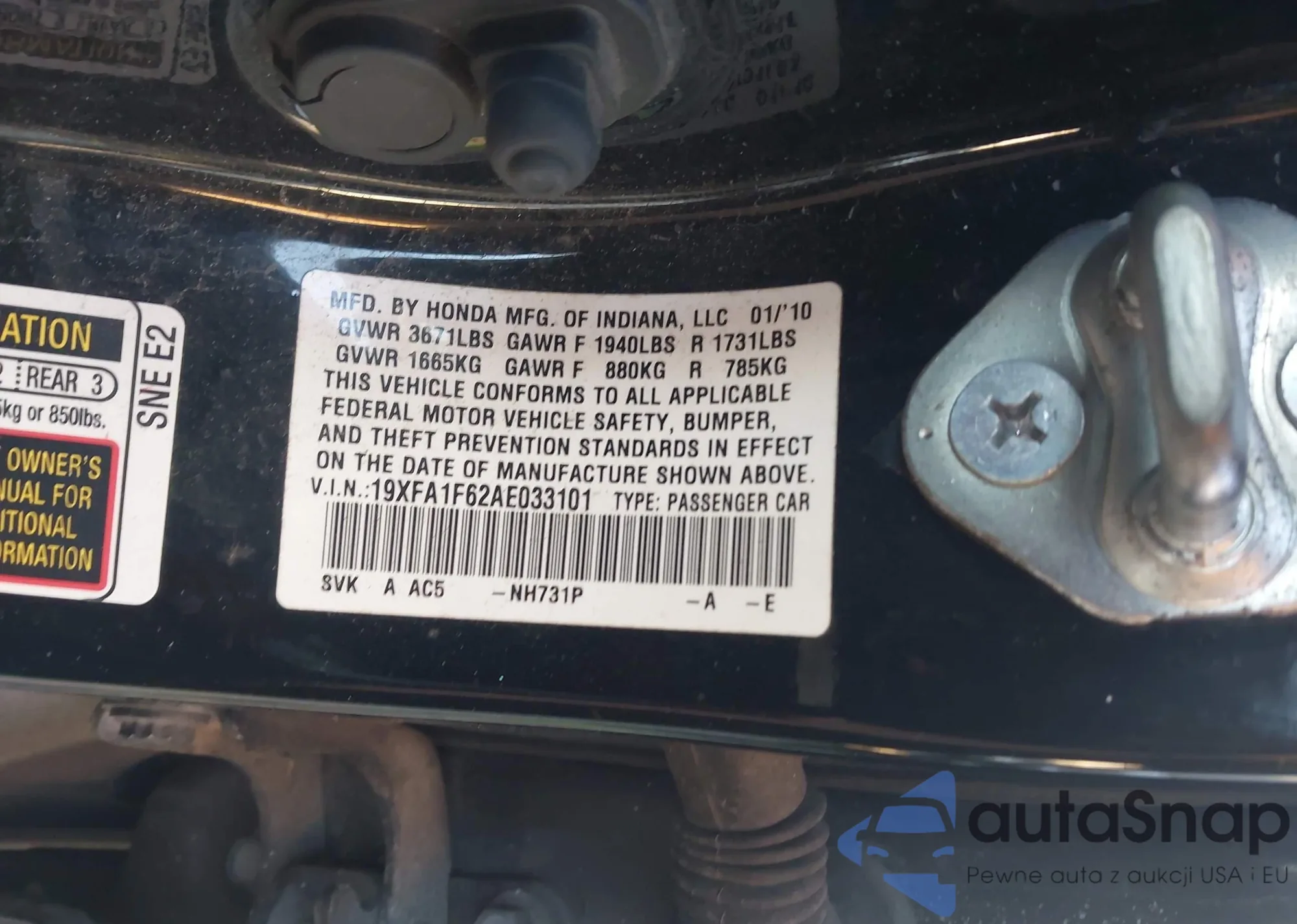 LOT: 43458170 VIN: 2HGFB2F51EH541114