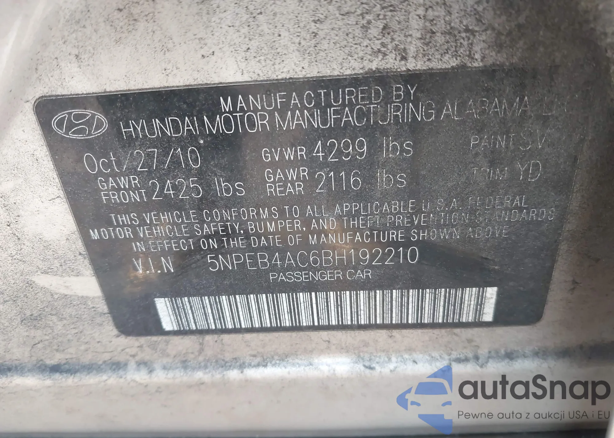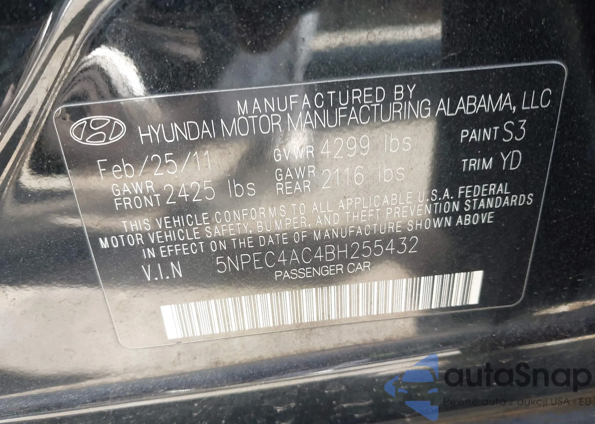 • VIN 5NPEC4AC4BH255432
