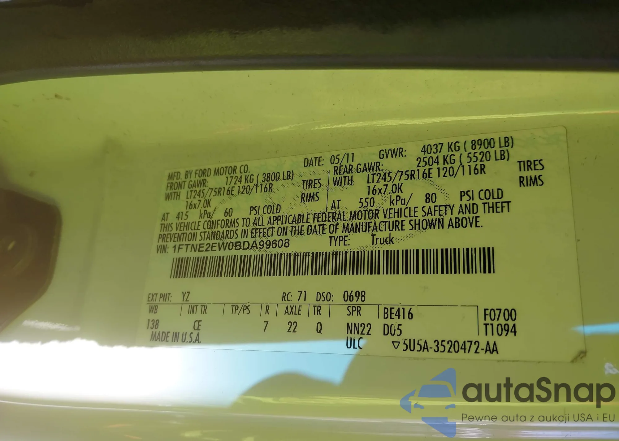 LOT: 43629470 VIN: 5NPEC4AC4BH255432