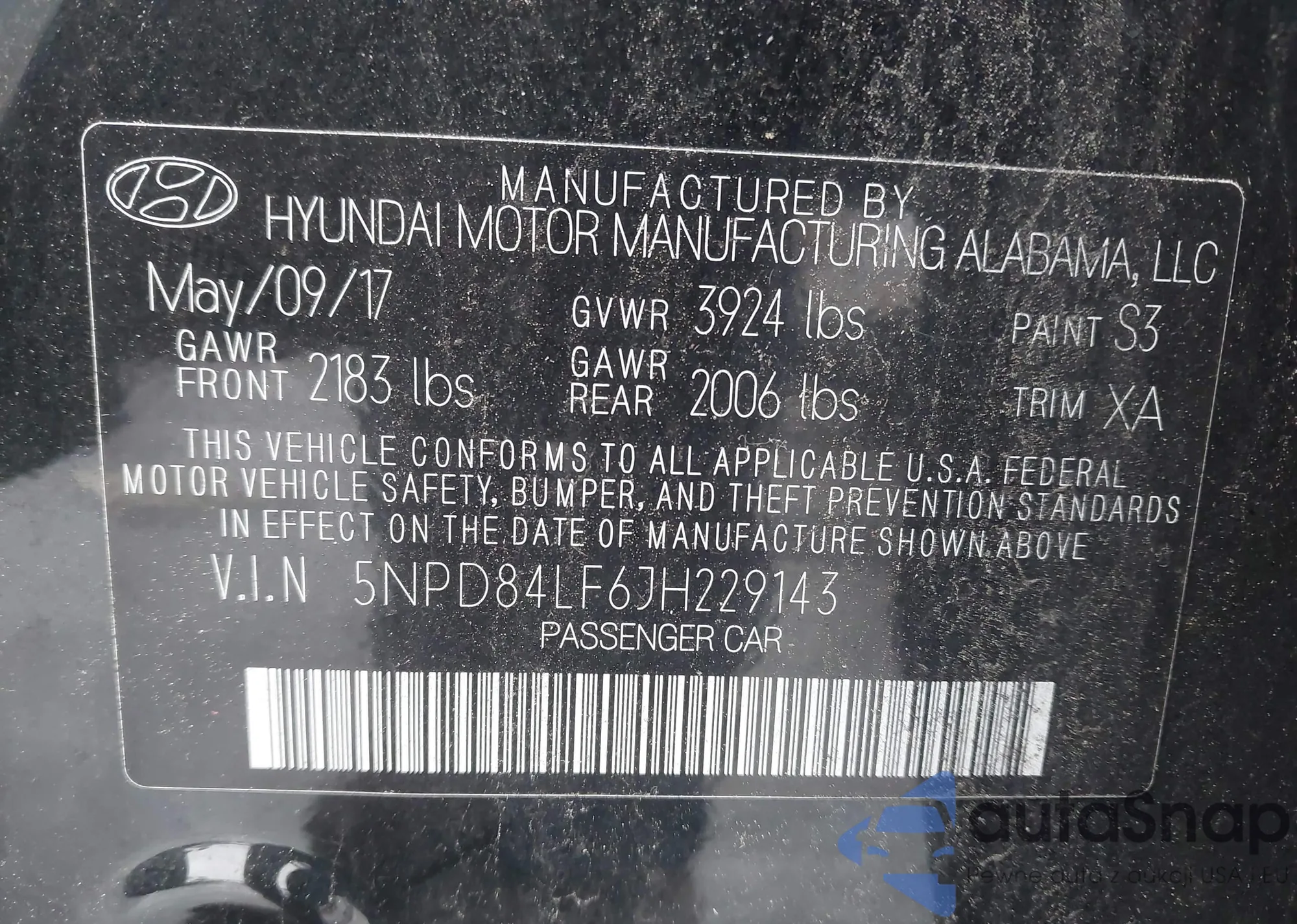 • VIN 5NPD84LF6JH229143
