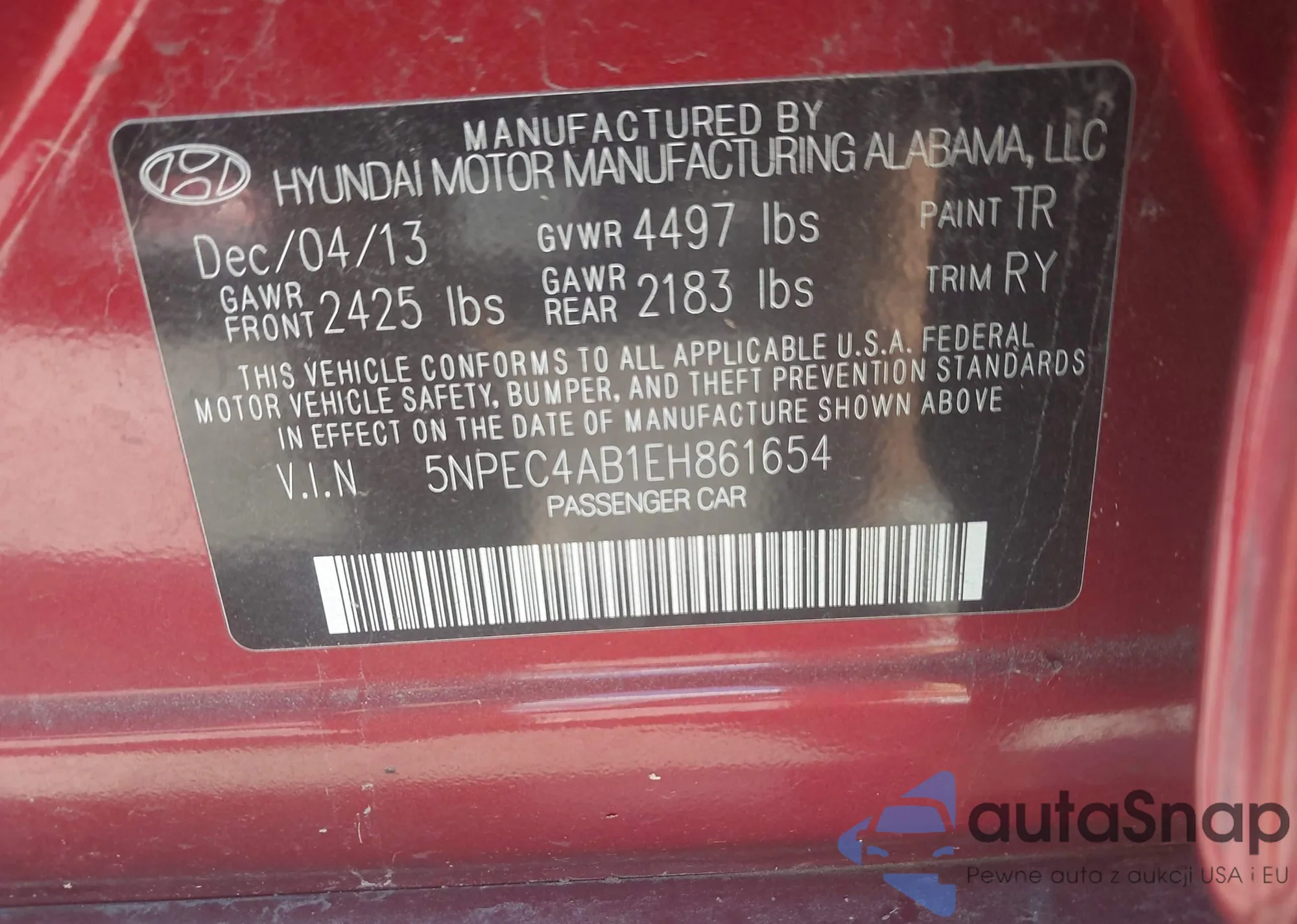 • VIN 5NPEC4AB1EH861654