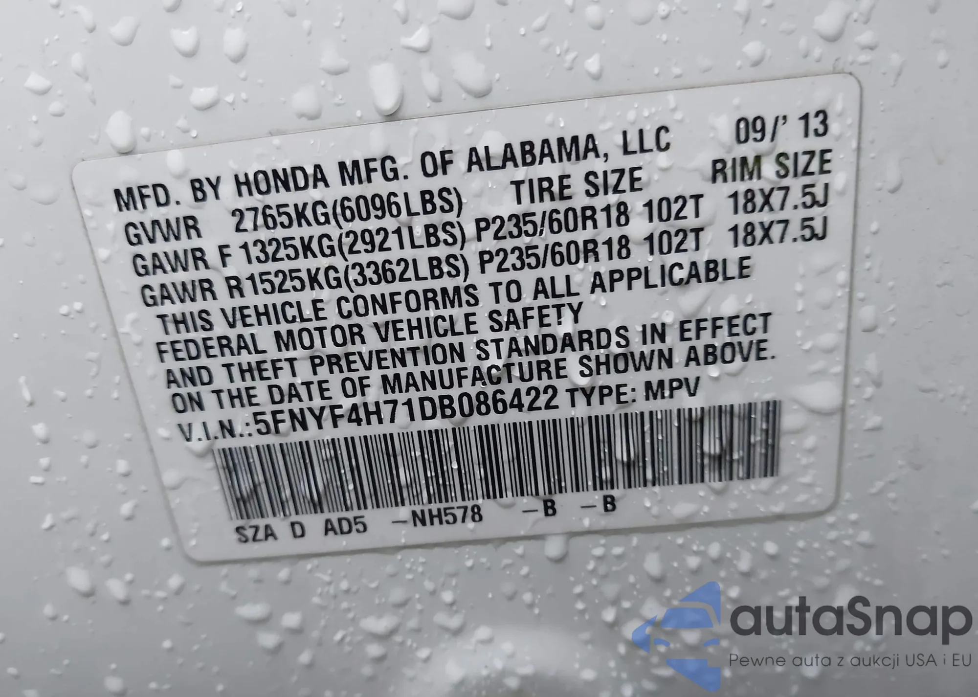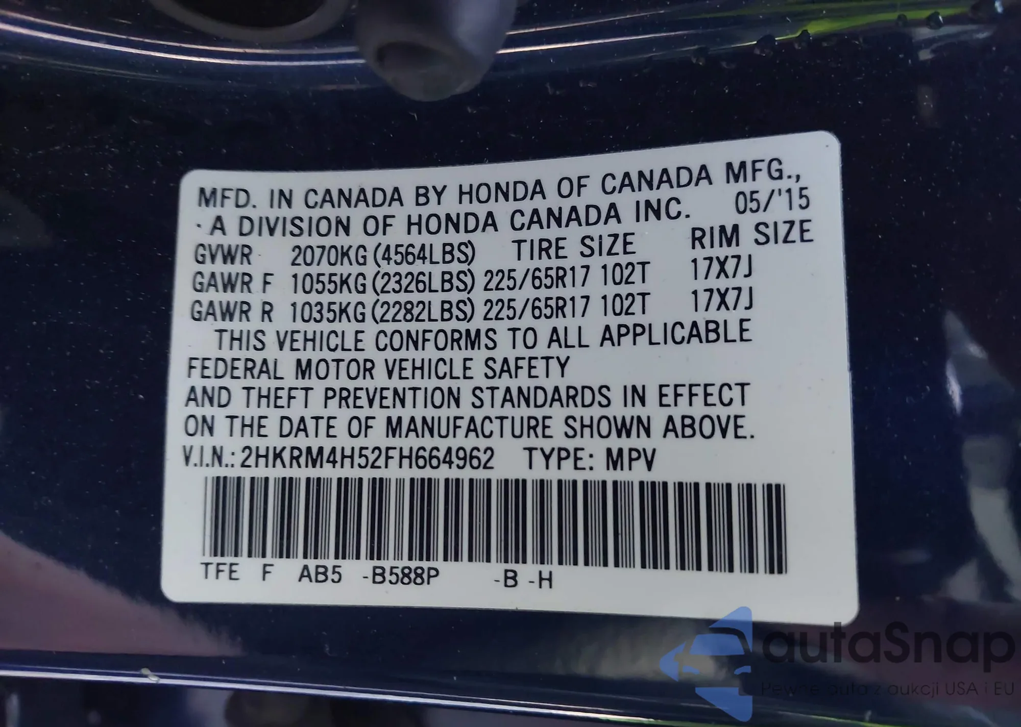 • VIN 2HKRM4H52FH664962