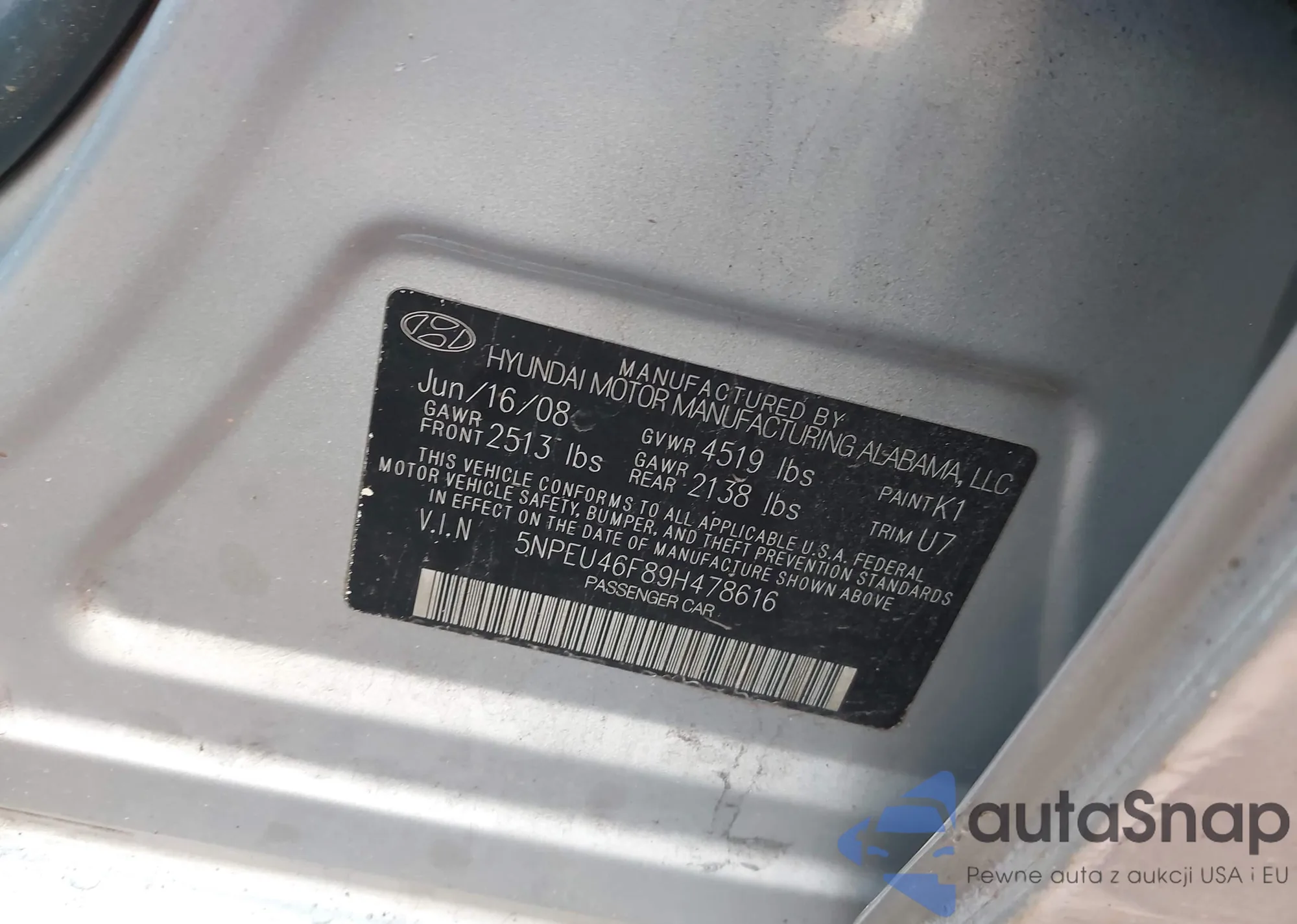 LOT: 43818337 VIN: 5NPEU46F89H478616