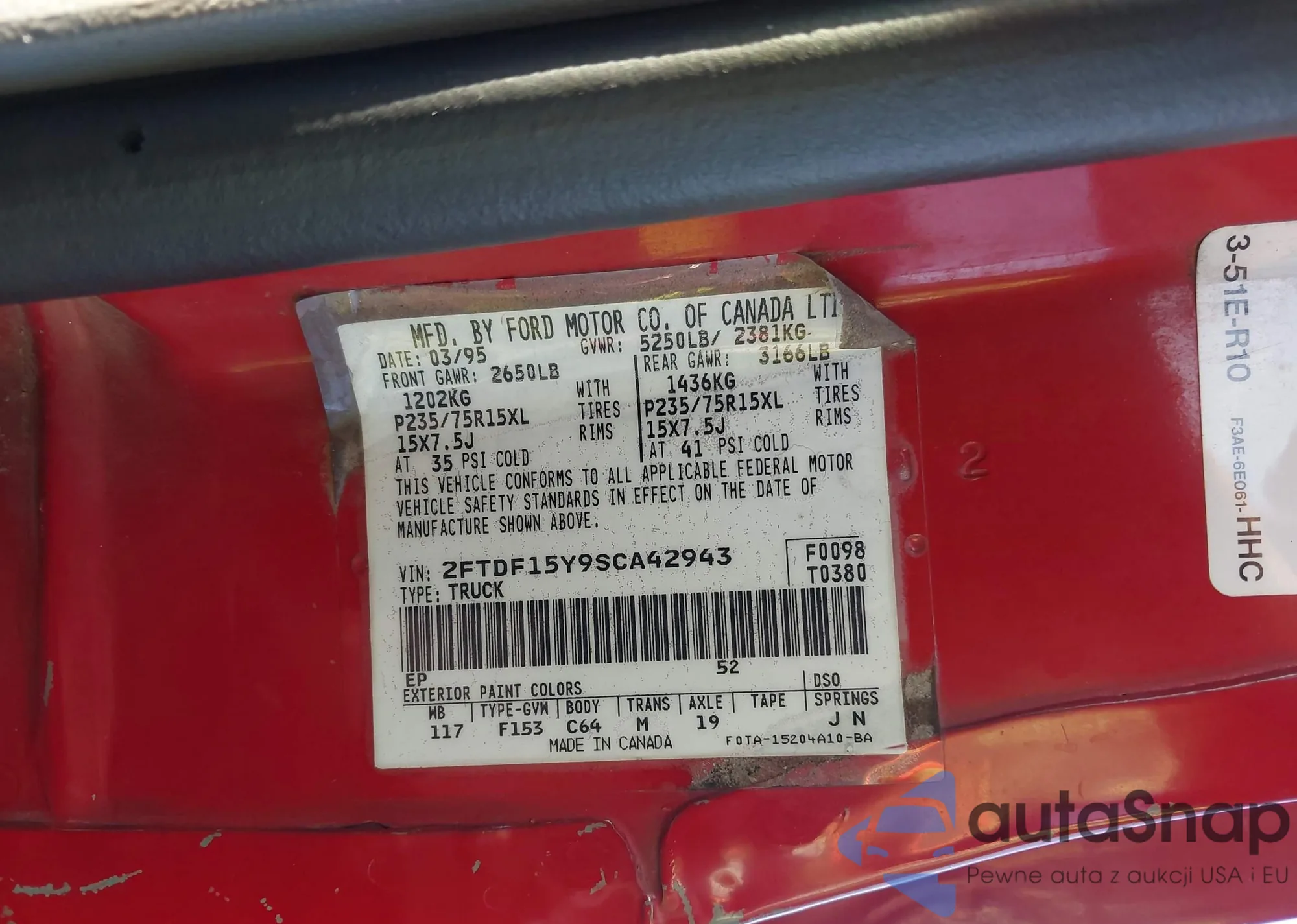• VIN 2FTDF15Y9SCA42943