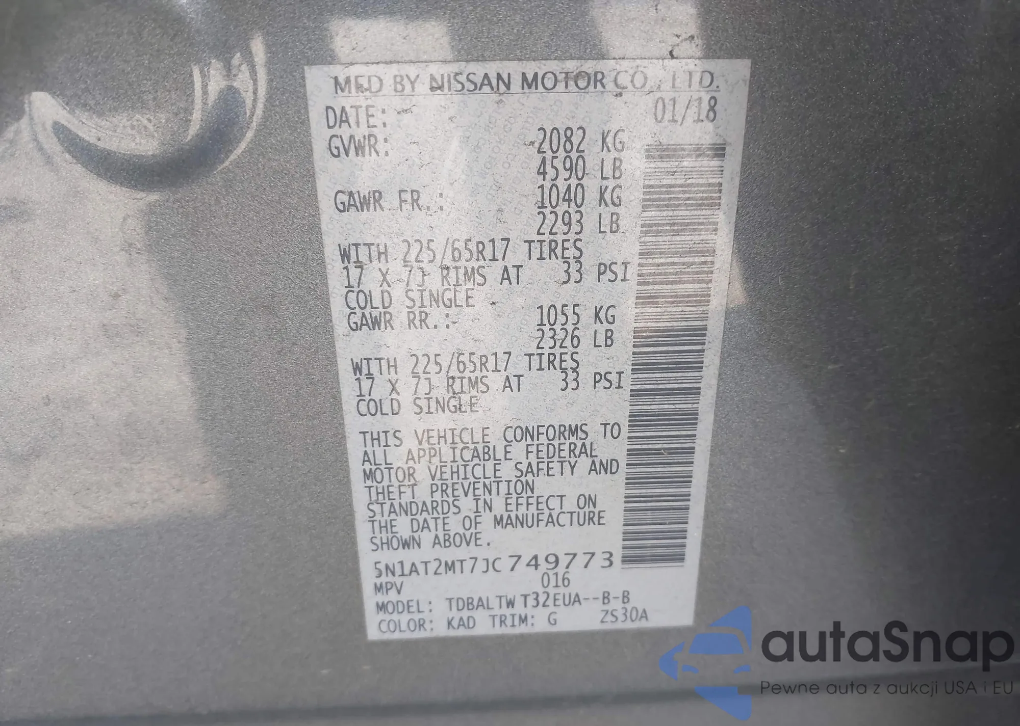 LOT: 43732499 VIN: 5N1AT2MT7JC749773