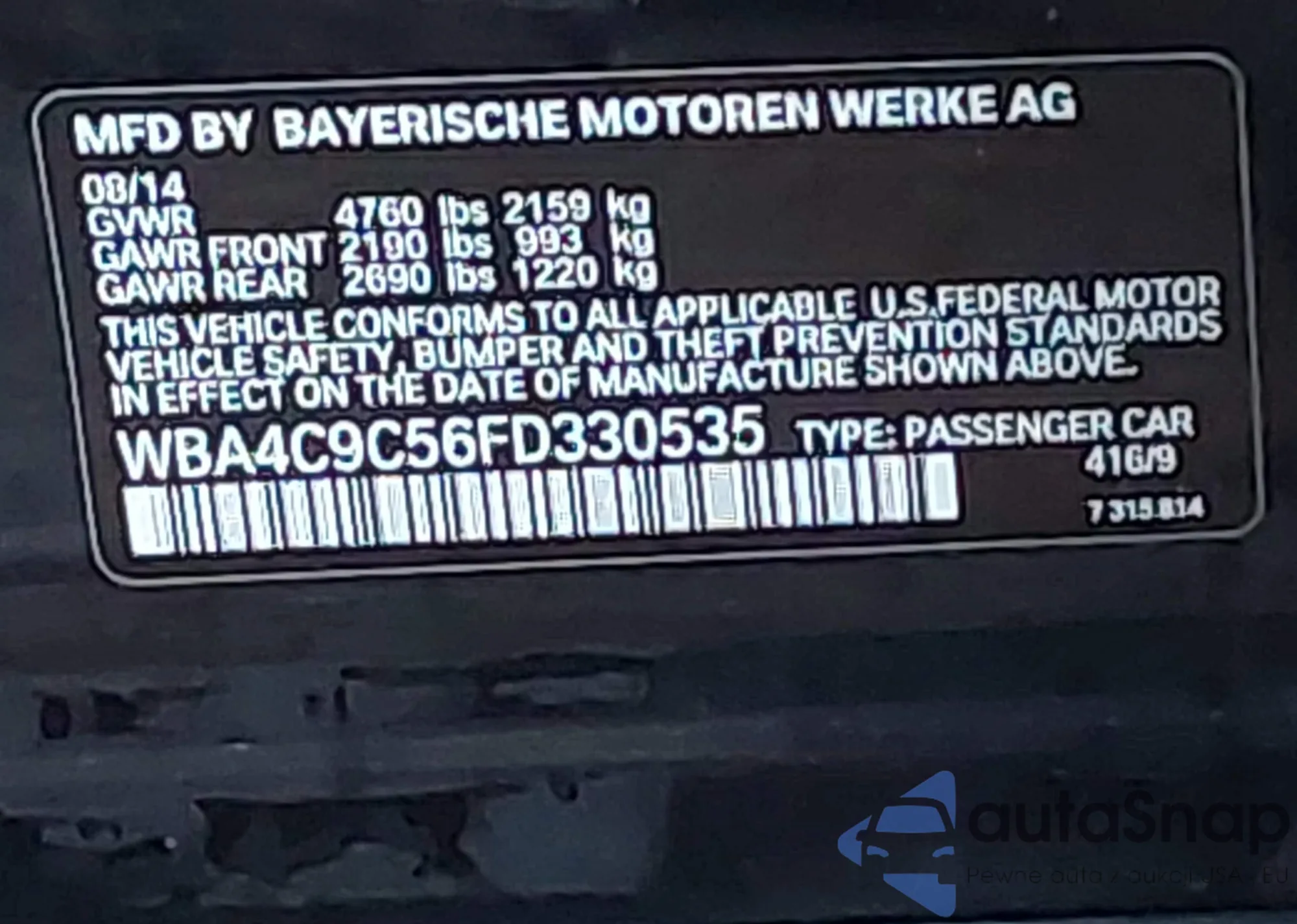 • VIN WBA4C9C56FD330535