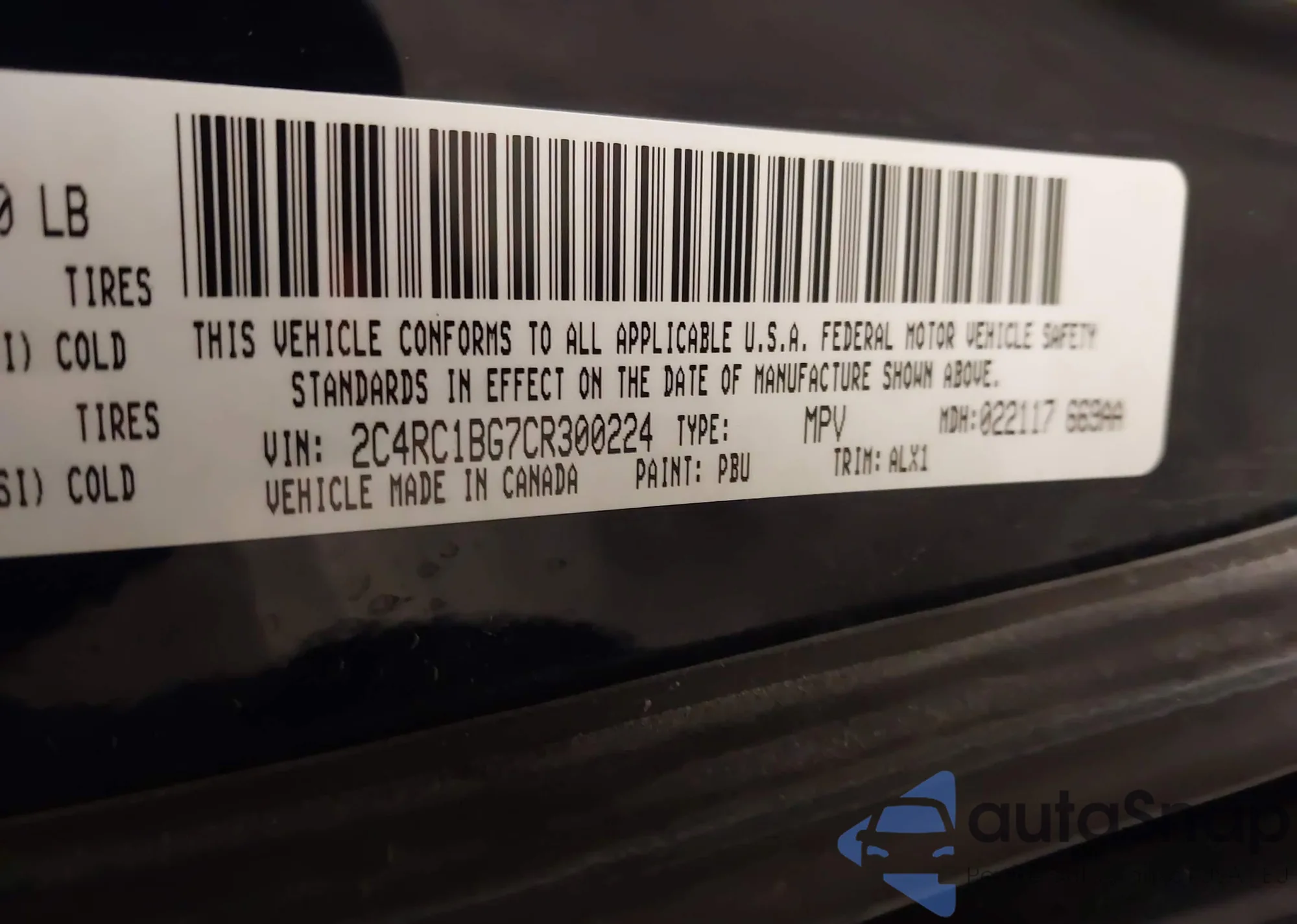 • VIN 2C4RC1BG7CR300224
