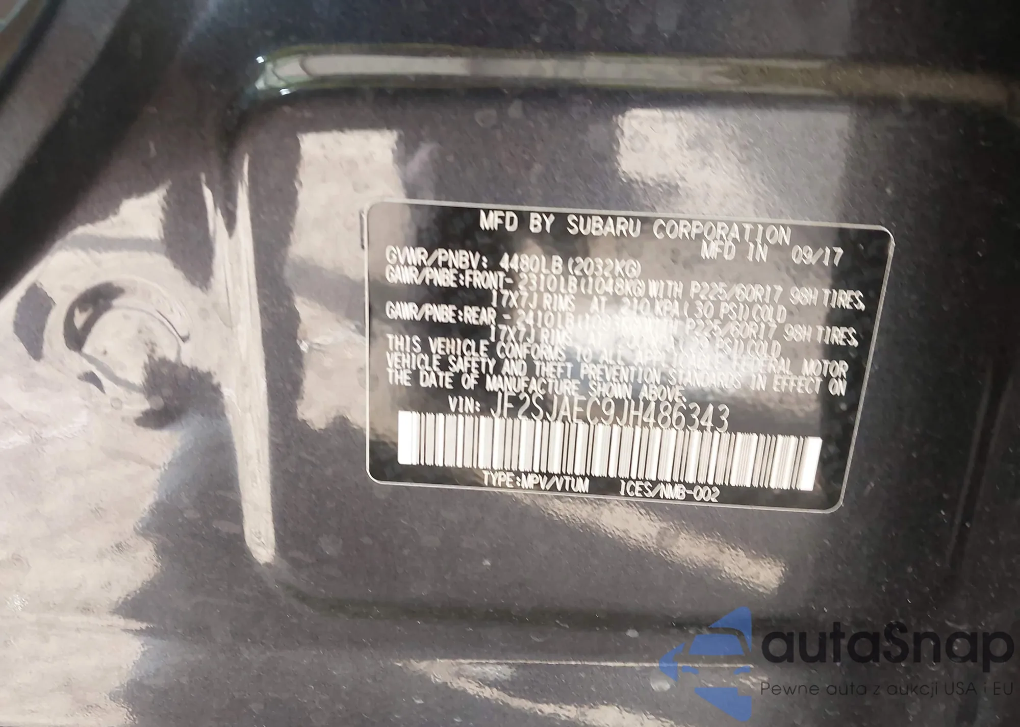 • VIN JF2SJAEC9JH486343