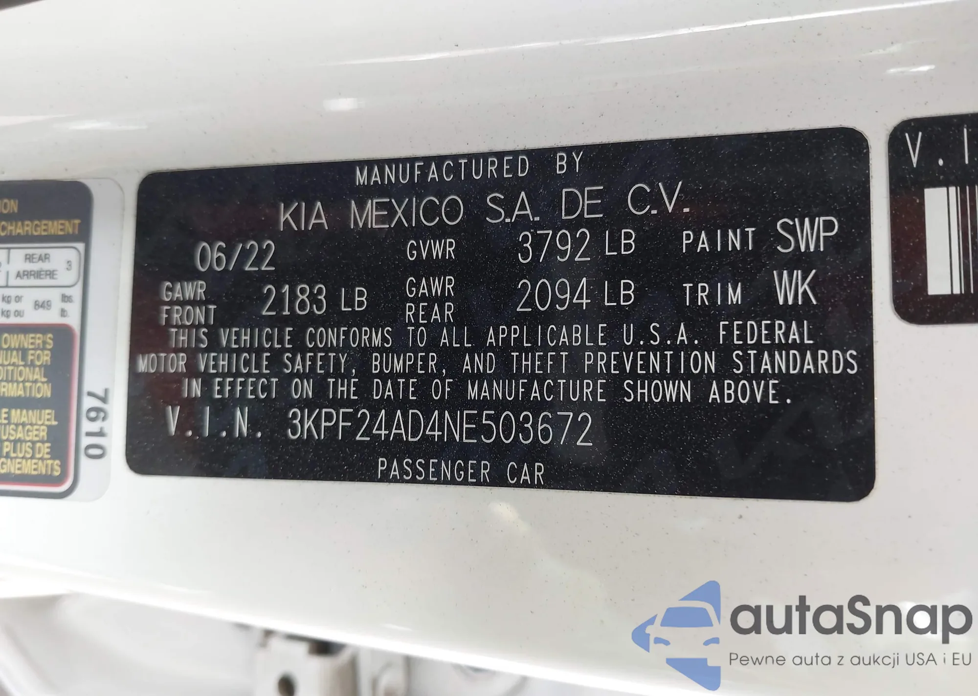 • VIN 3KPF24AD1NE496499