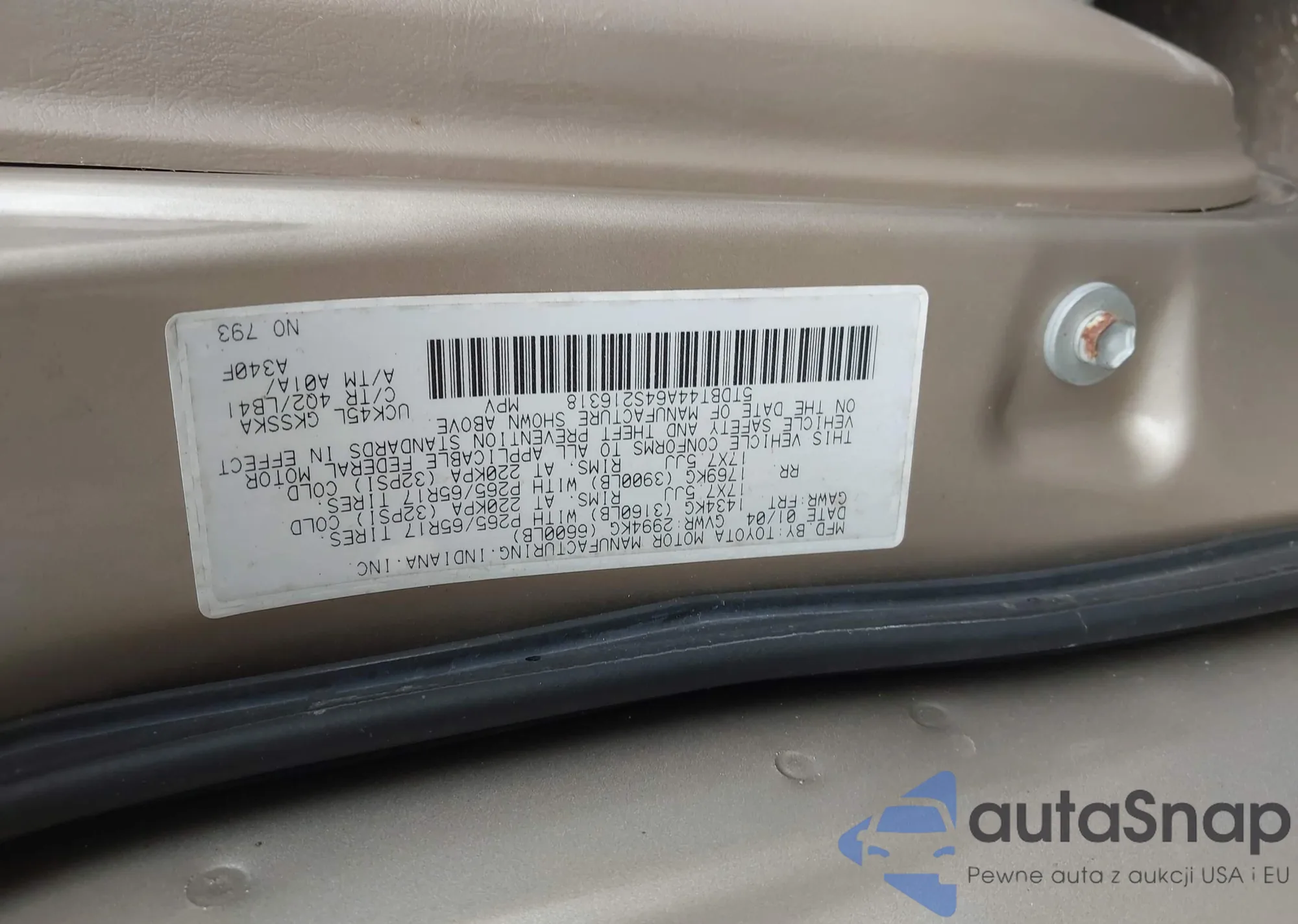 LOT: 43722000 VIN: WA1BY74L17D097897