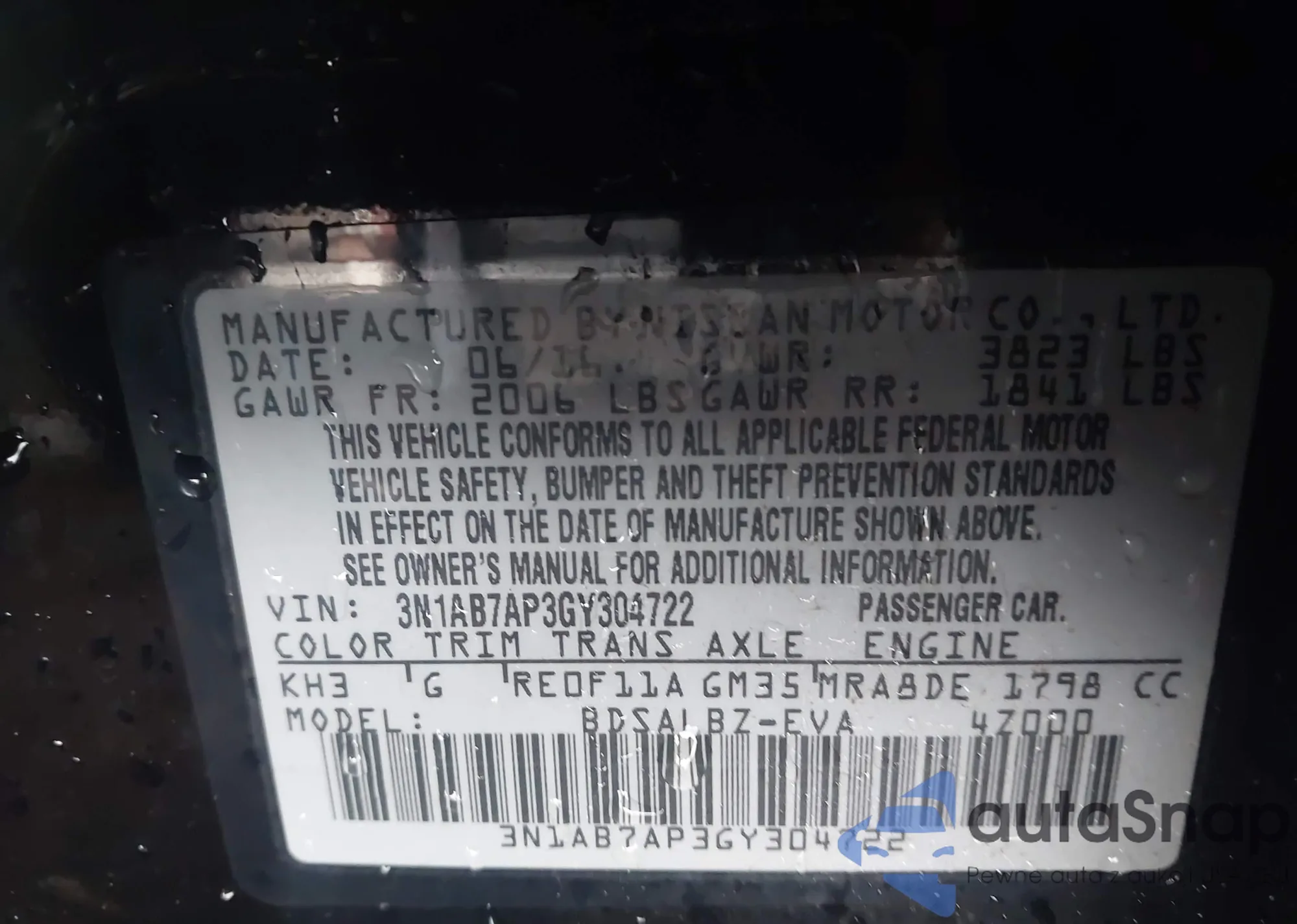 • VIN 3N1AB7AP3GY304722