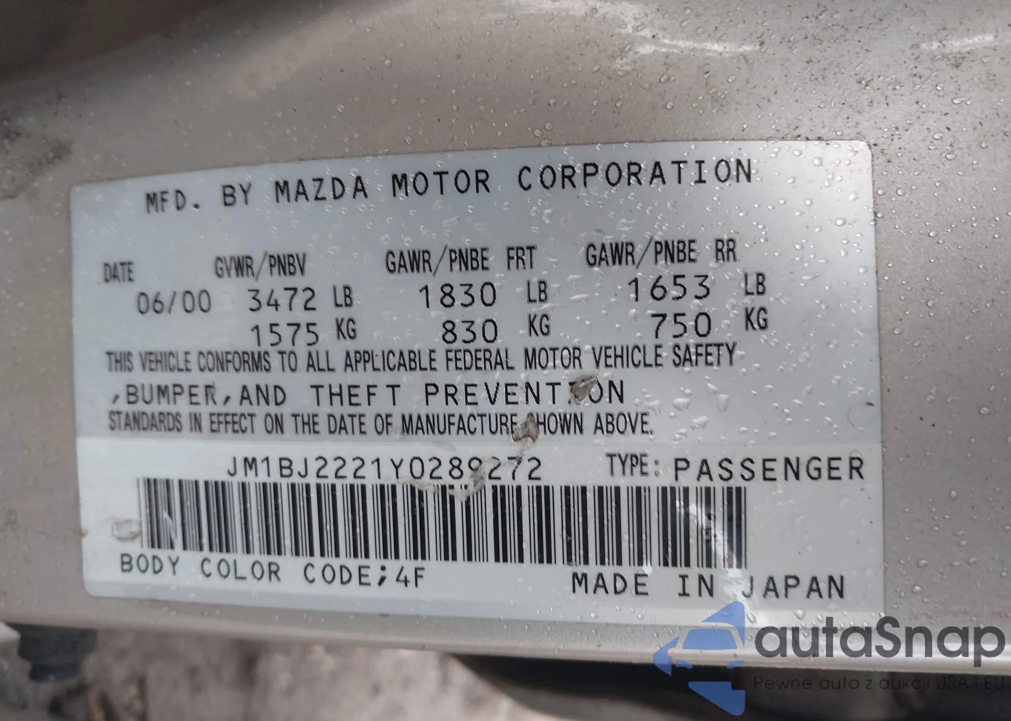 LOT: 43420931 VIN: JM1BJ2221Y0289272