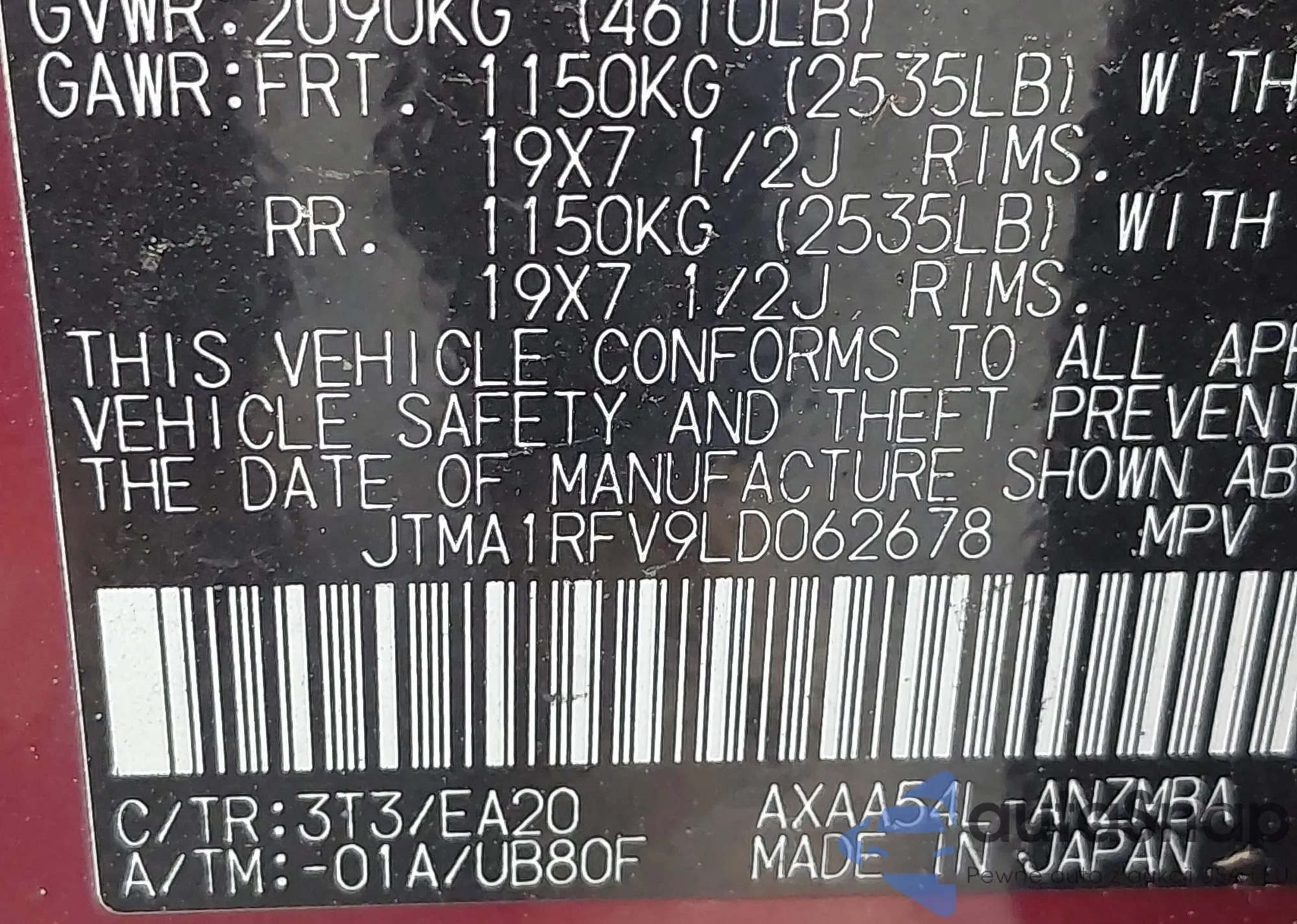 • VIN JTEAAAAH9RJ191464
