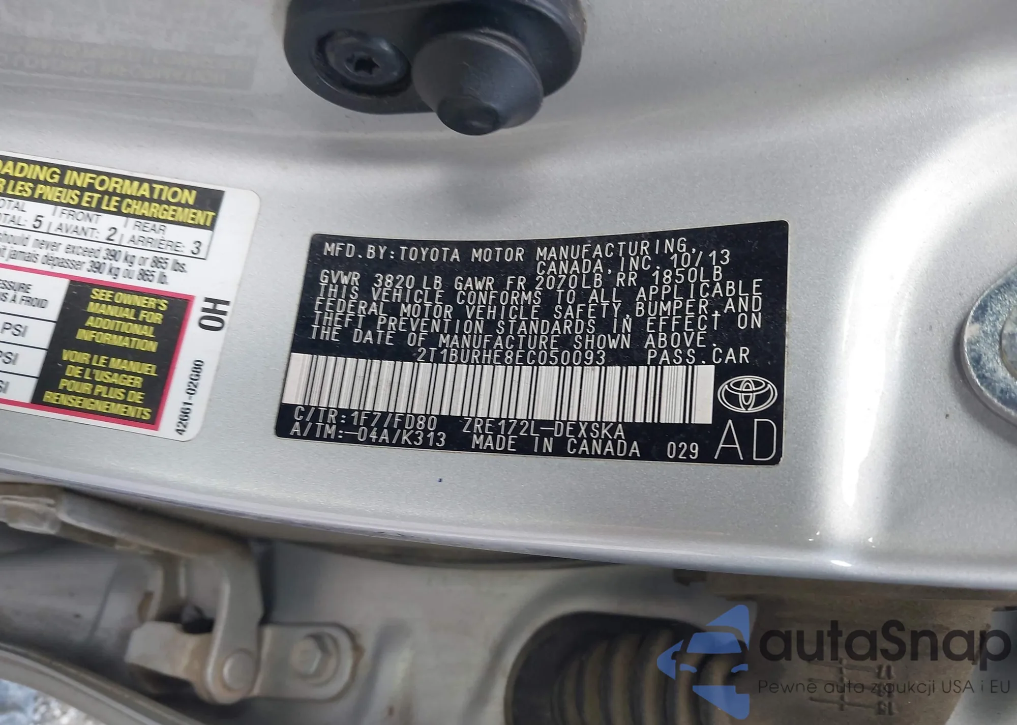 • VIN 2T1BURHE8EC050093