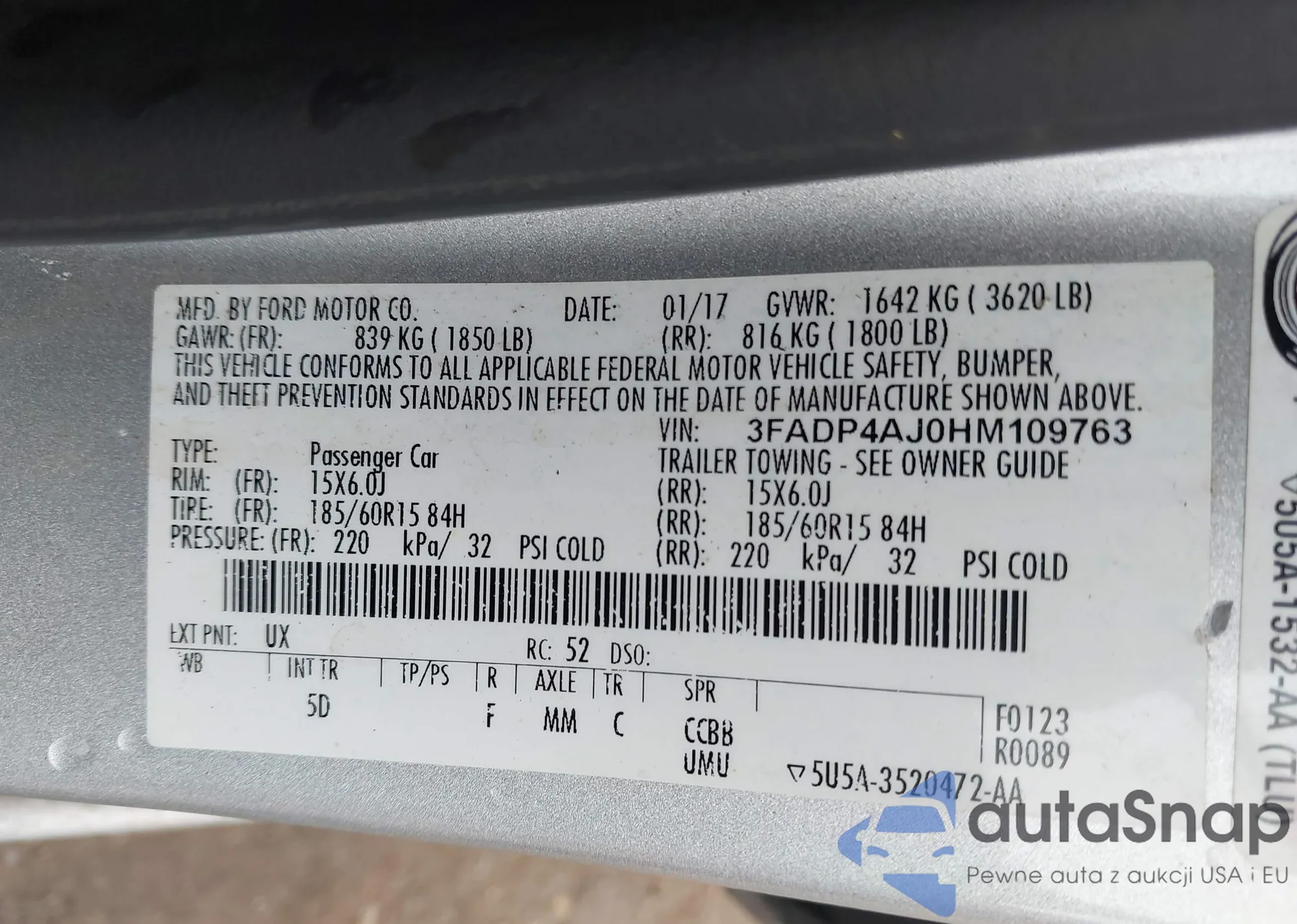 LOT: 43529512 VIN: 3FADP4AJ0HM109763