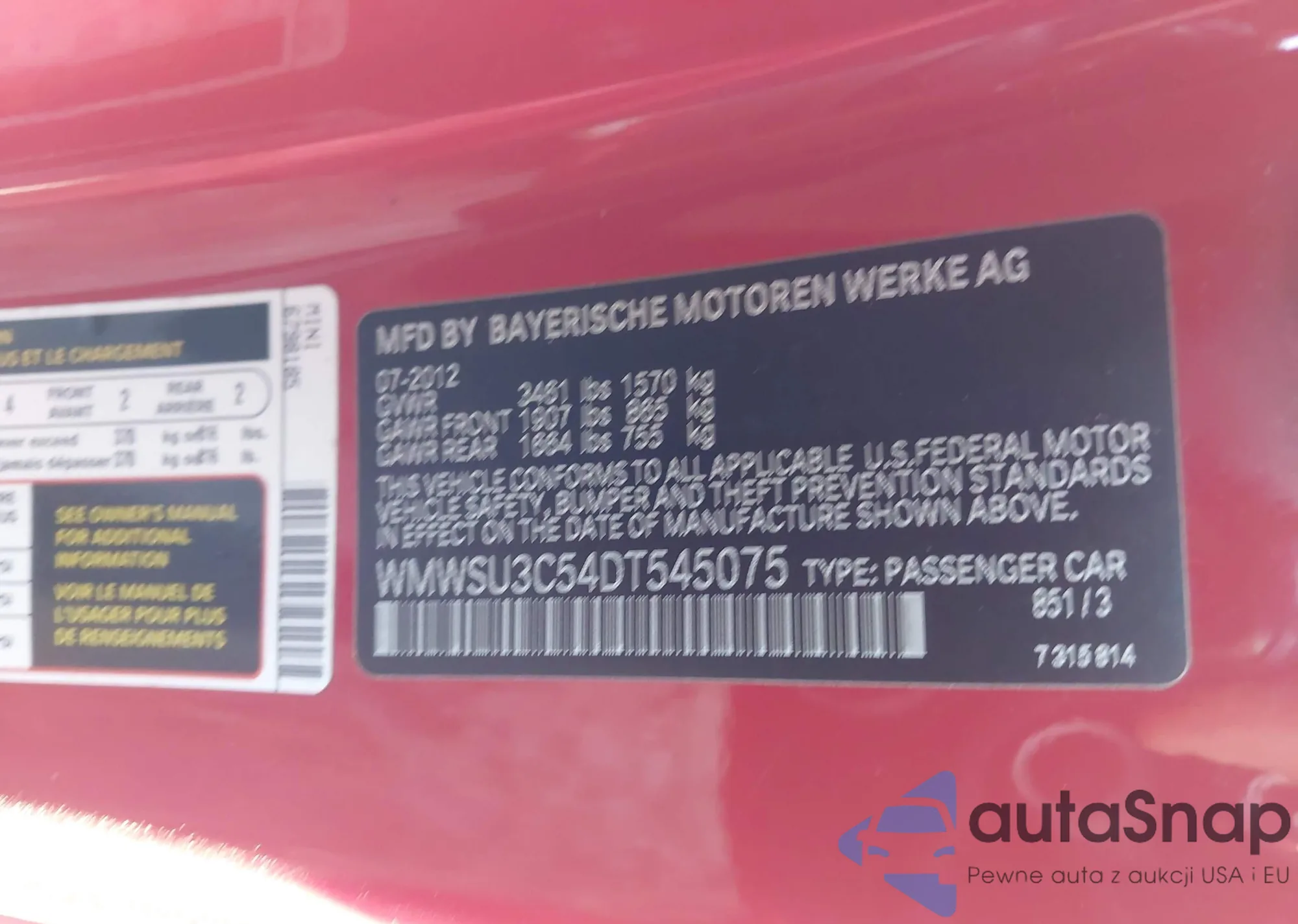 LOT: 43866068 VIN: WMWSU3C54DT545075