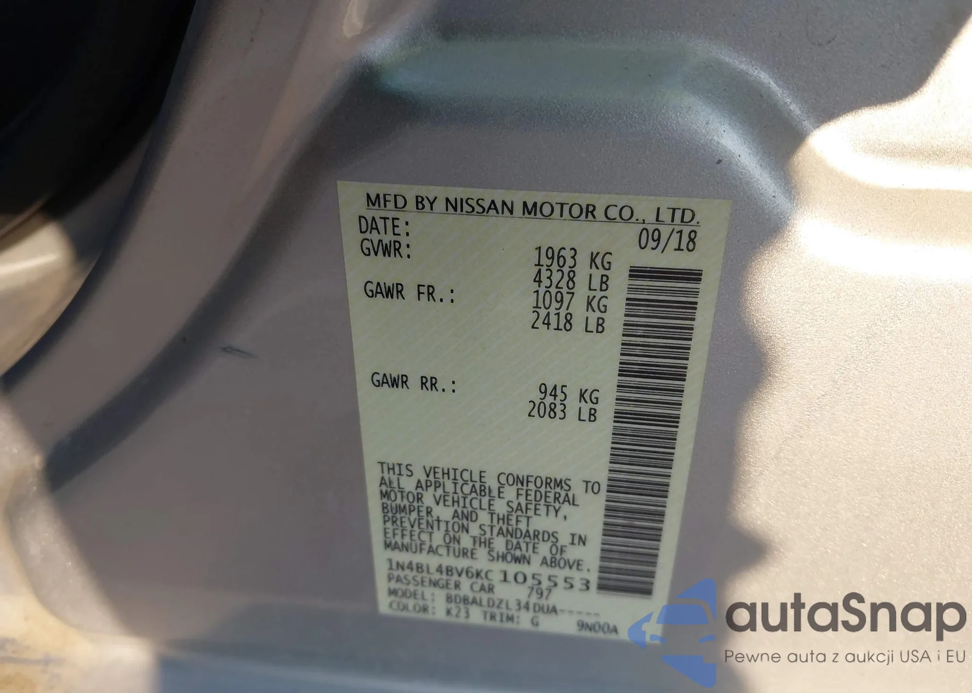 • VIN 1N4AL3AP0HN314826