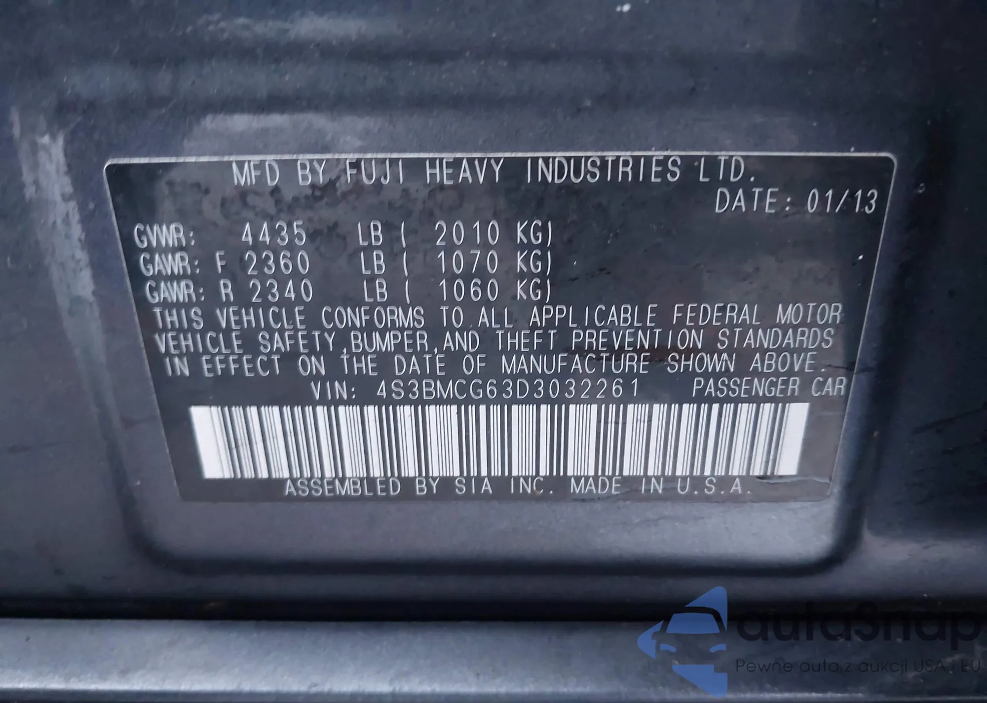 • VIN 4S3BMCG63D3032261