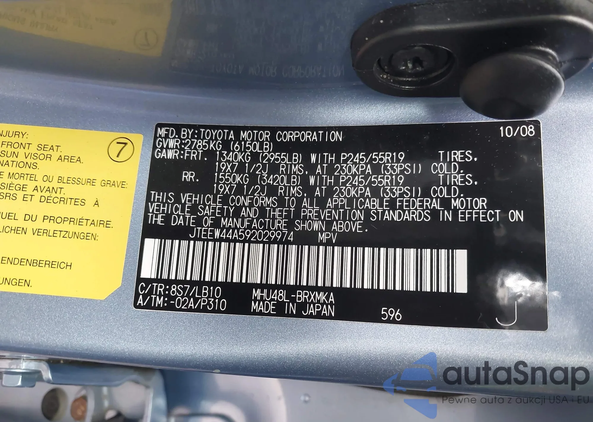 LOT: 43741010 VIN: JTDJT923X85213981