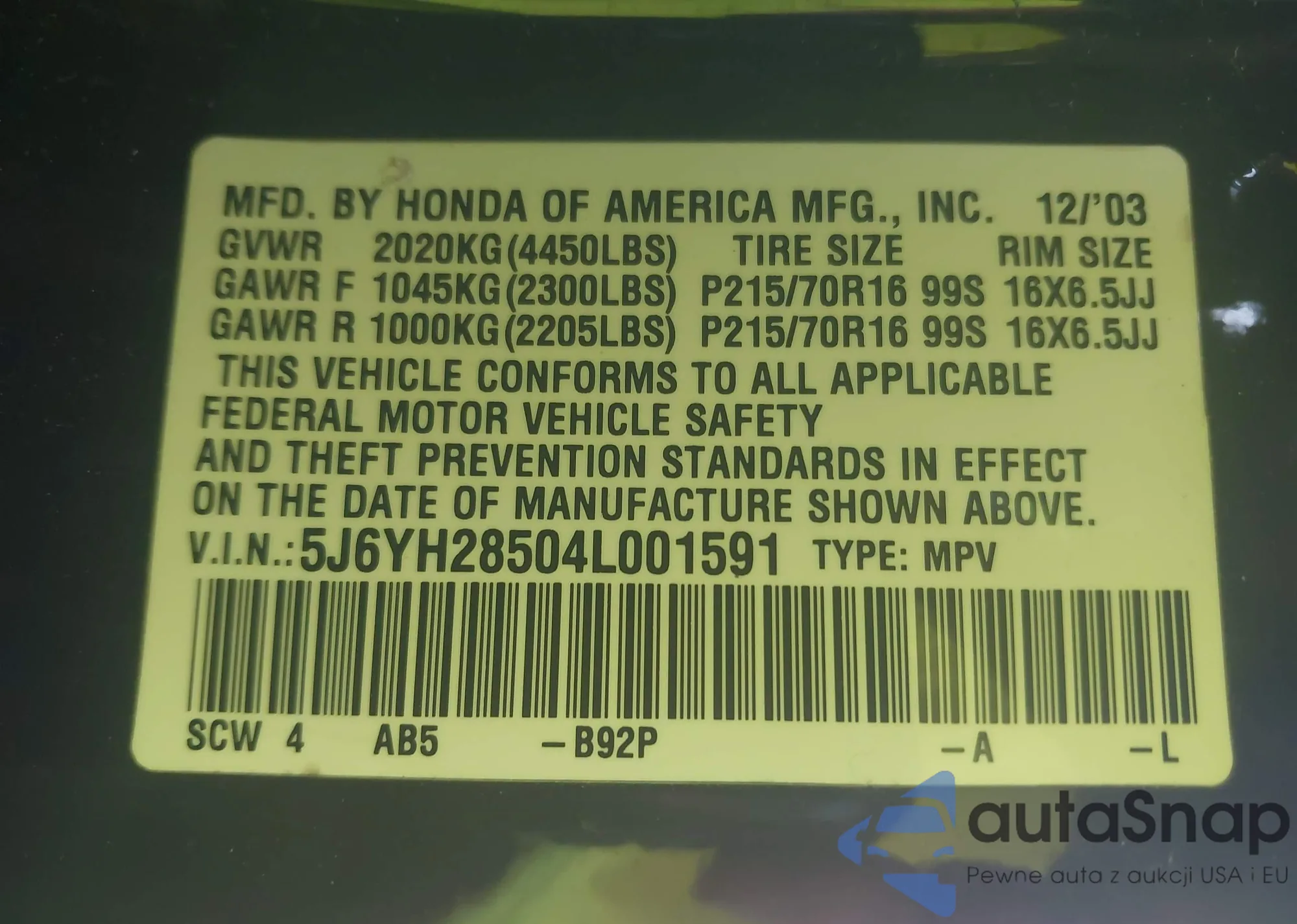 • VIN 5FNRL38718B104835