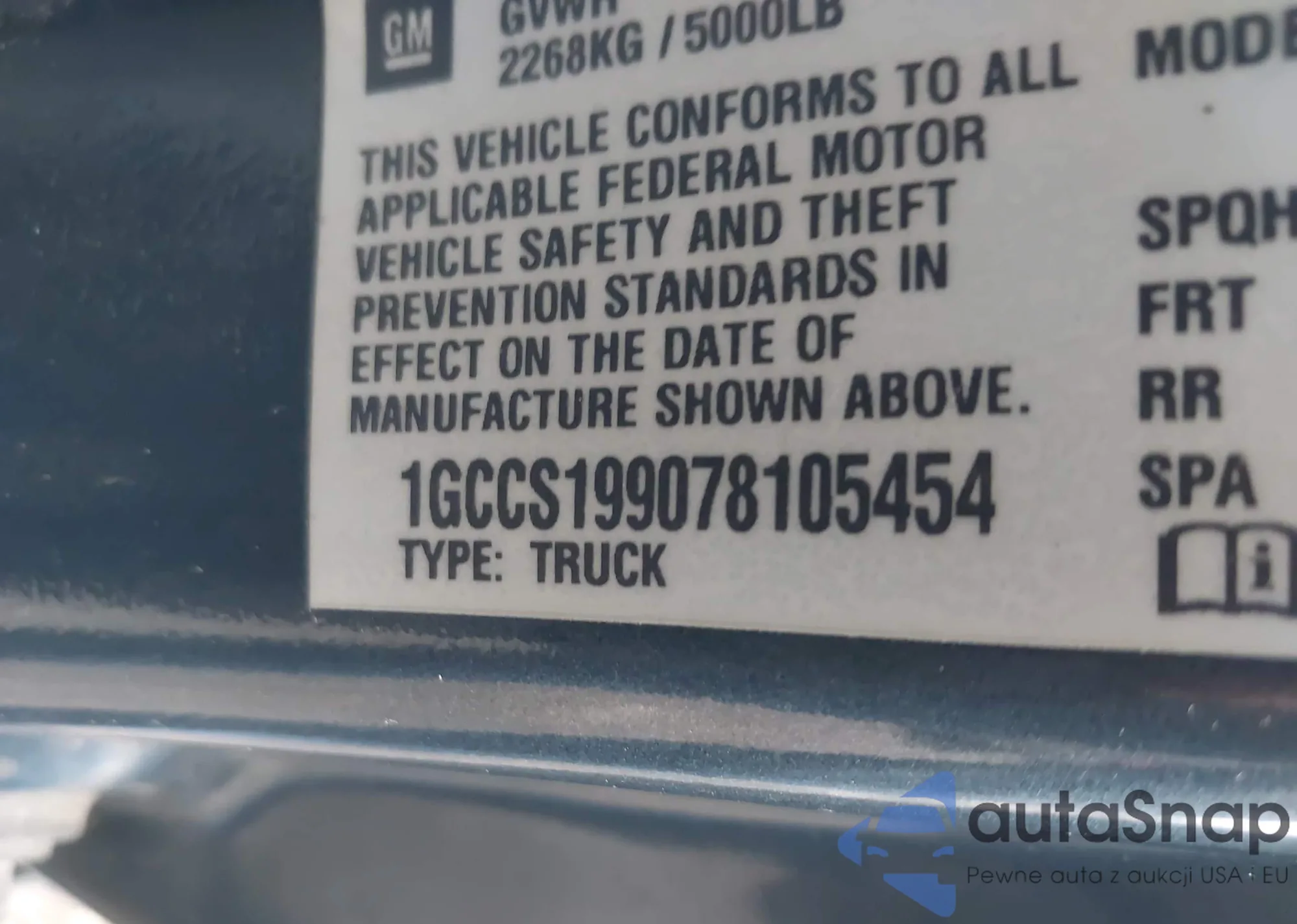 LOT: 43806743 VIN: 1GCCS199078105454