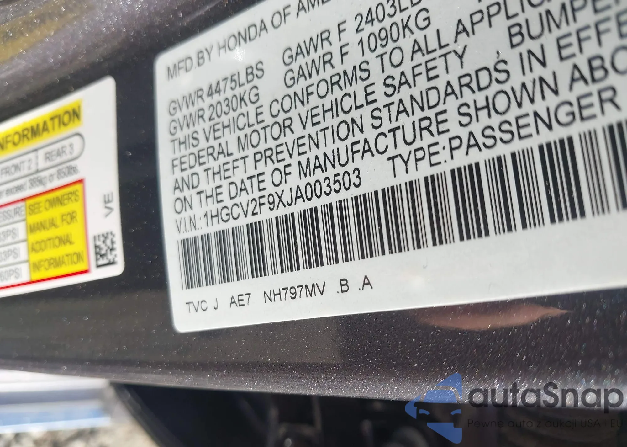 • VIN 1HGCV2F9XJA003503