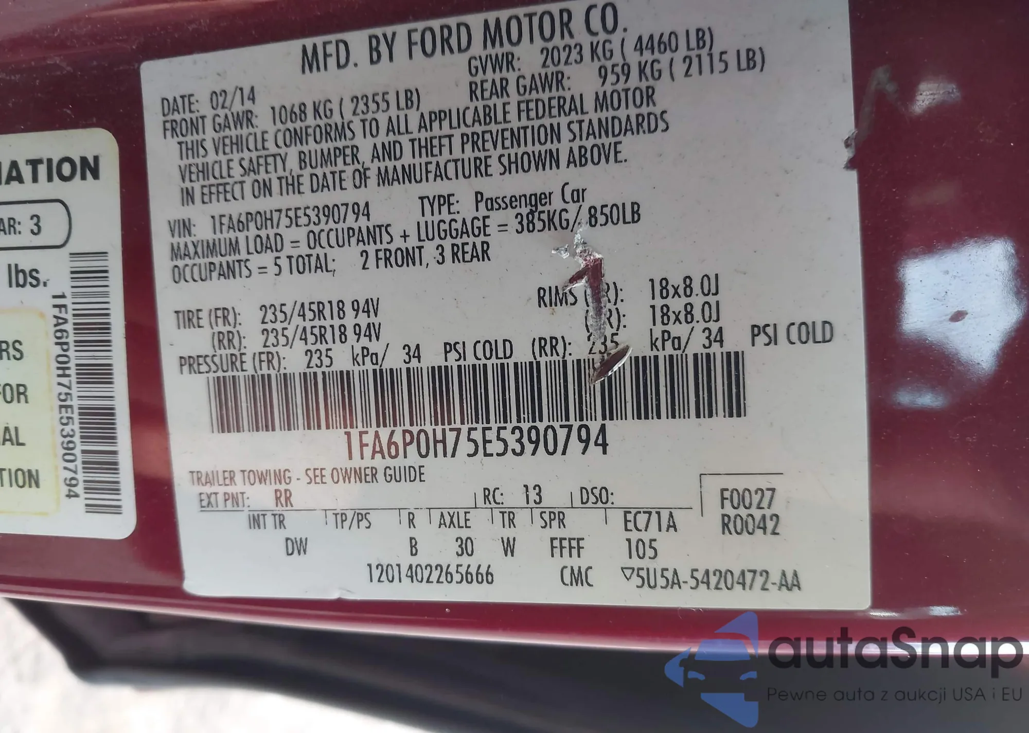 LOT: 43915086 VIN: WAUKFAFM6CA006663