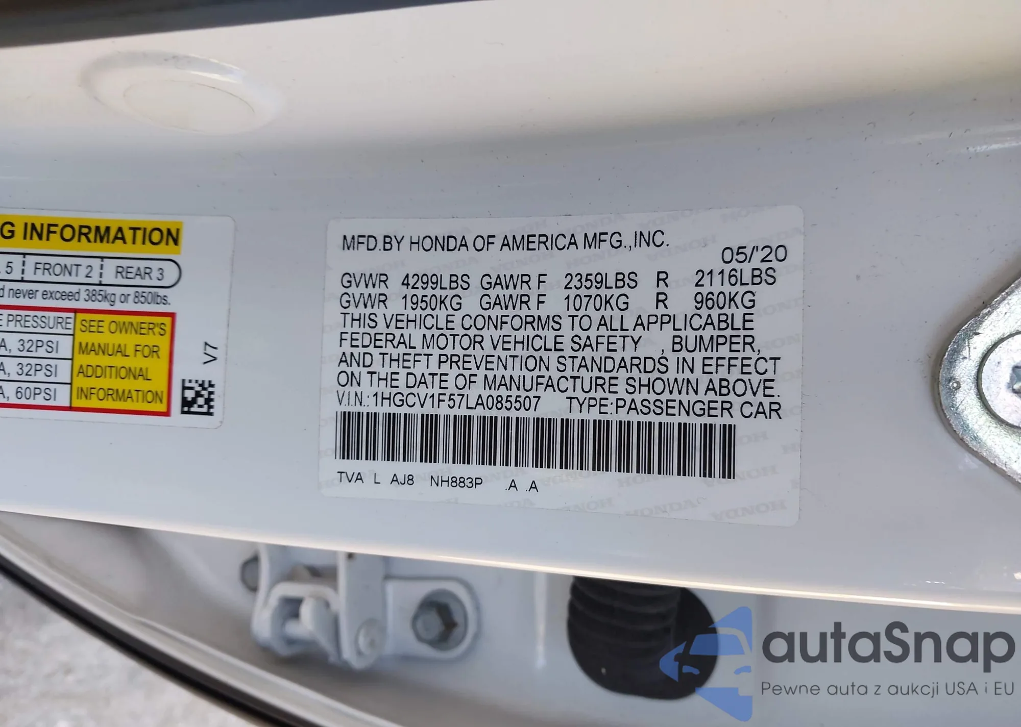 • VIN 1HGCV1F57LA085507