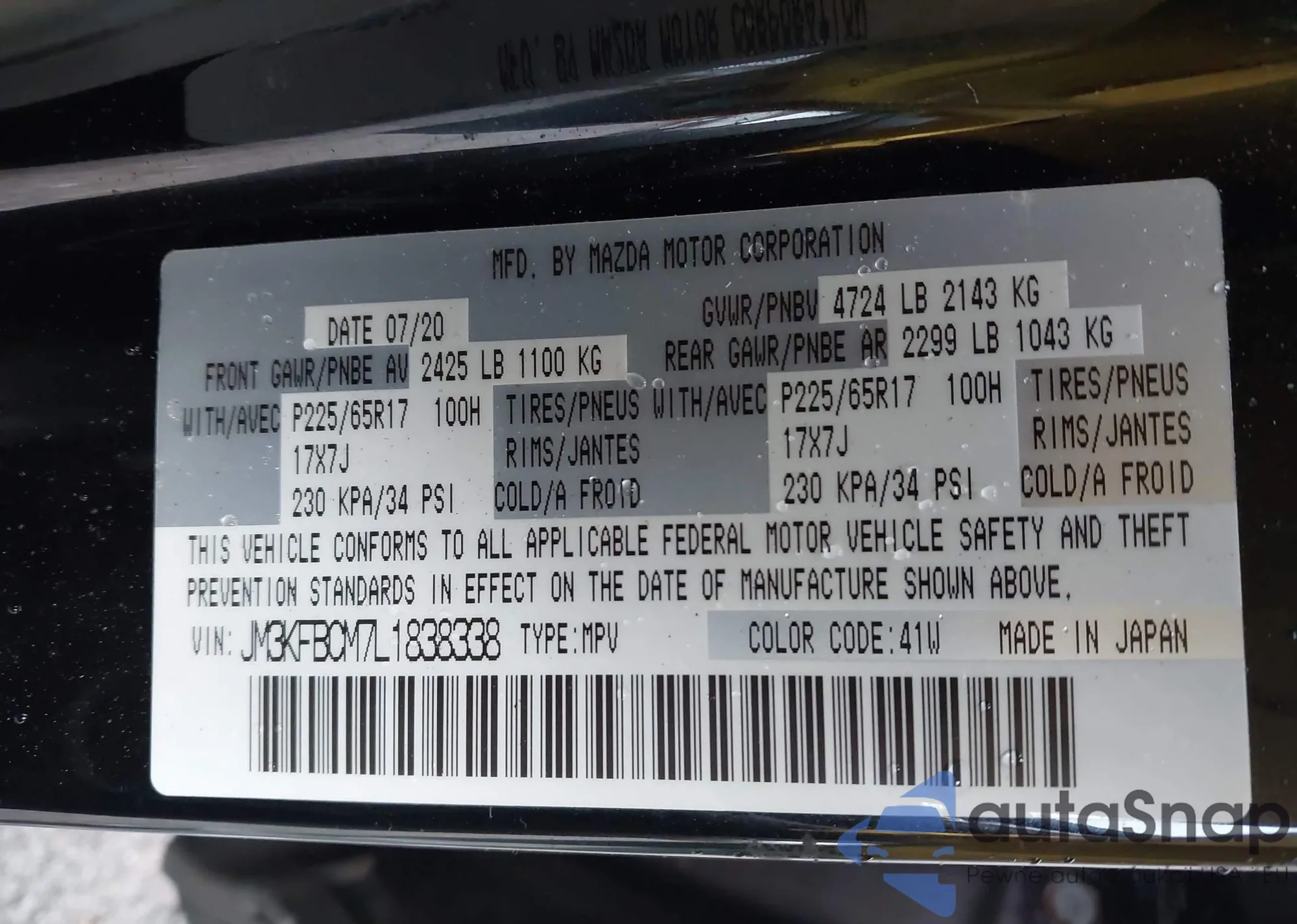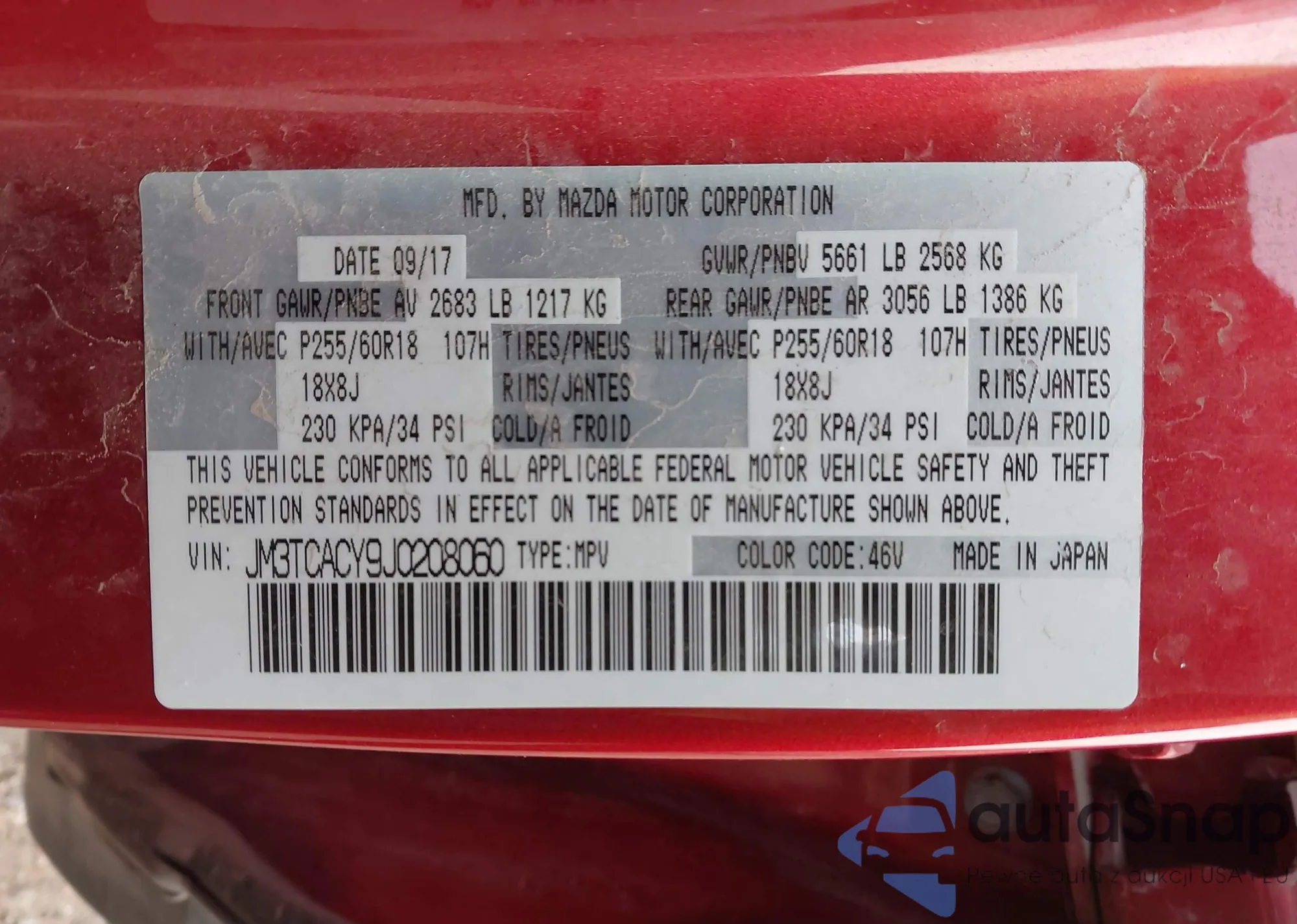 • VIN JM3TCACY9J0208060
