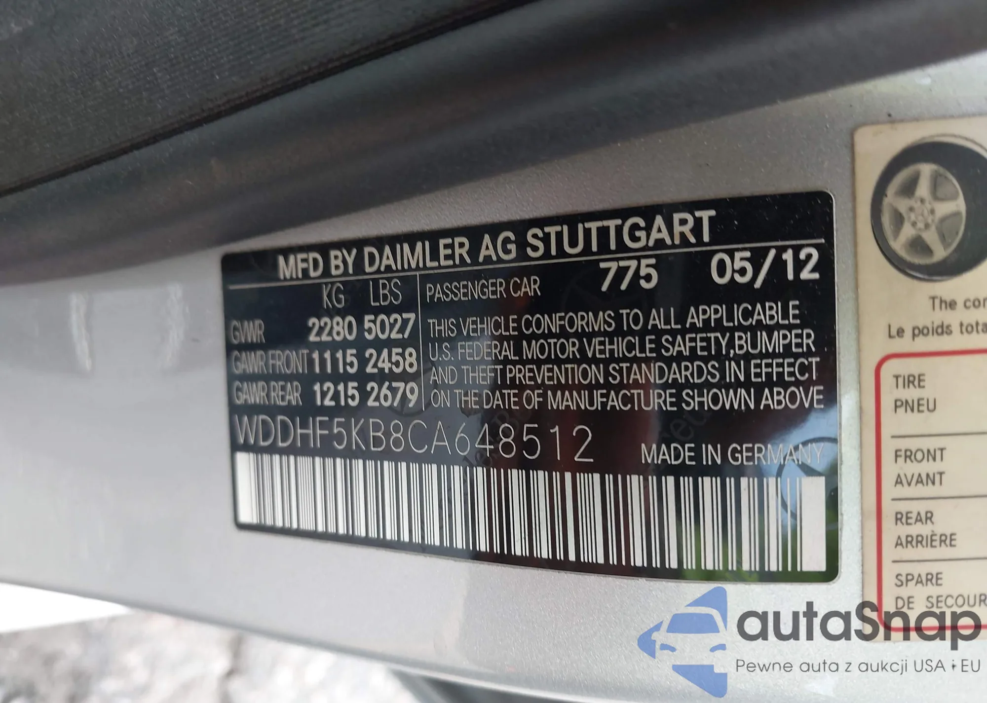 • VIN WDDHF5KB8CA648512