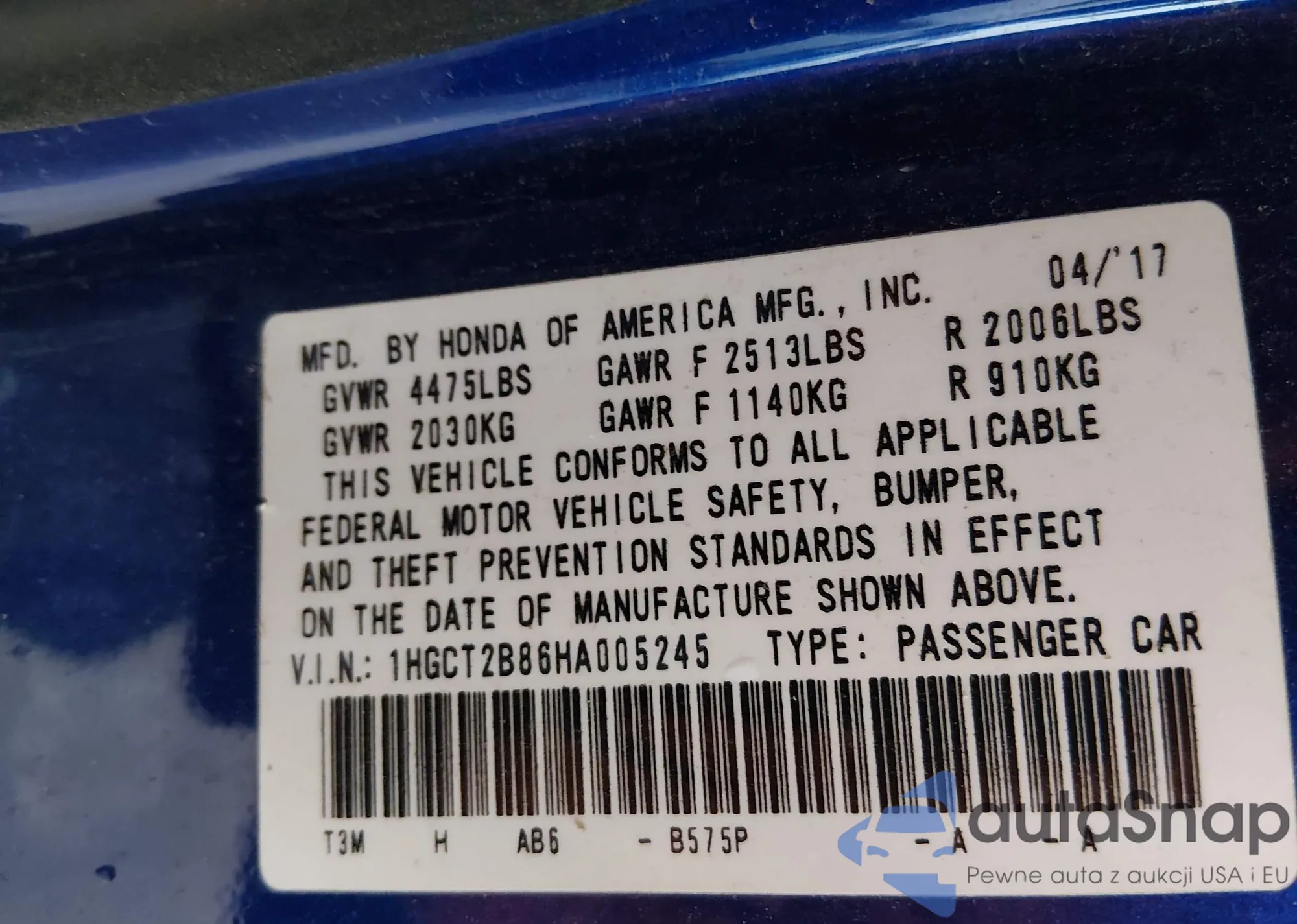 • VIN 19XFB2F51DE009435