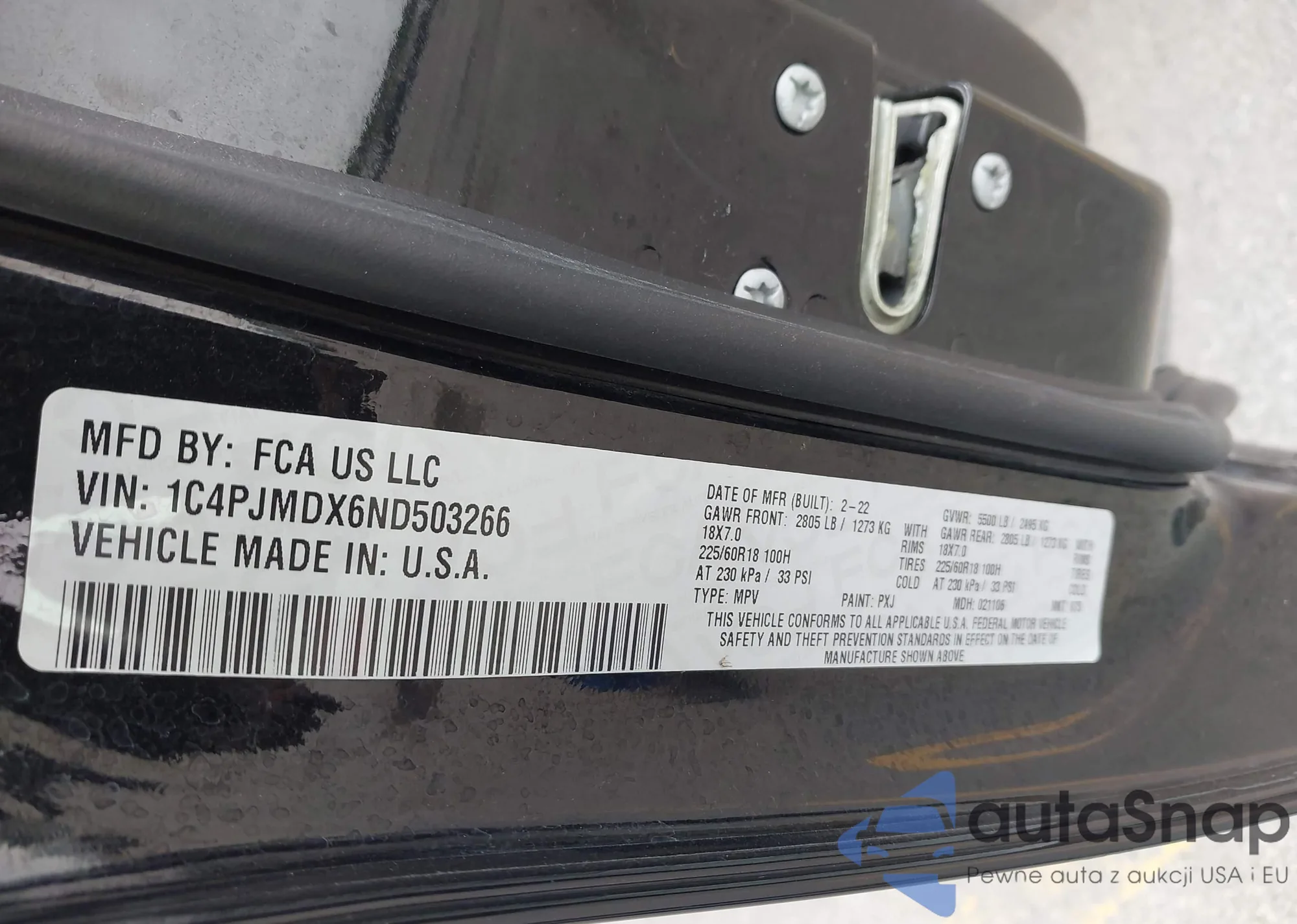 • VIN 1C4PJMDX6ND503266