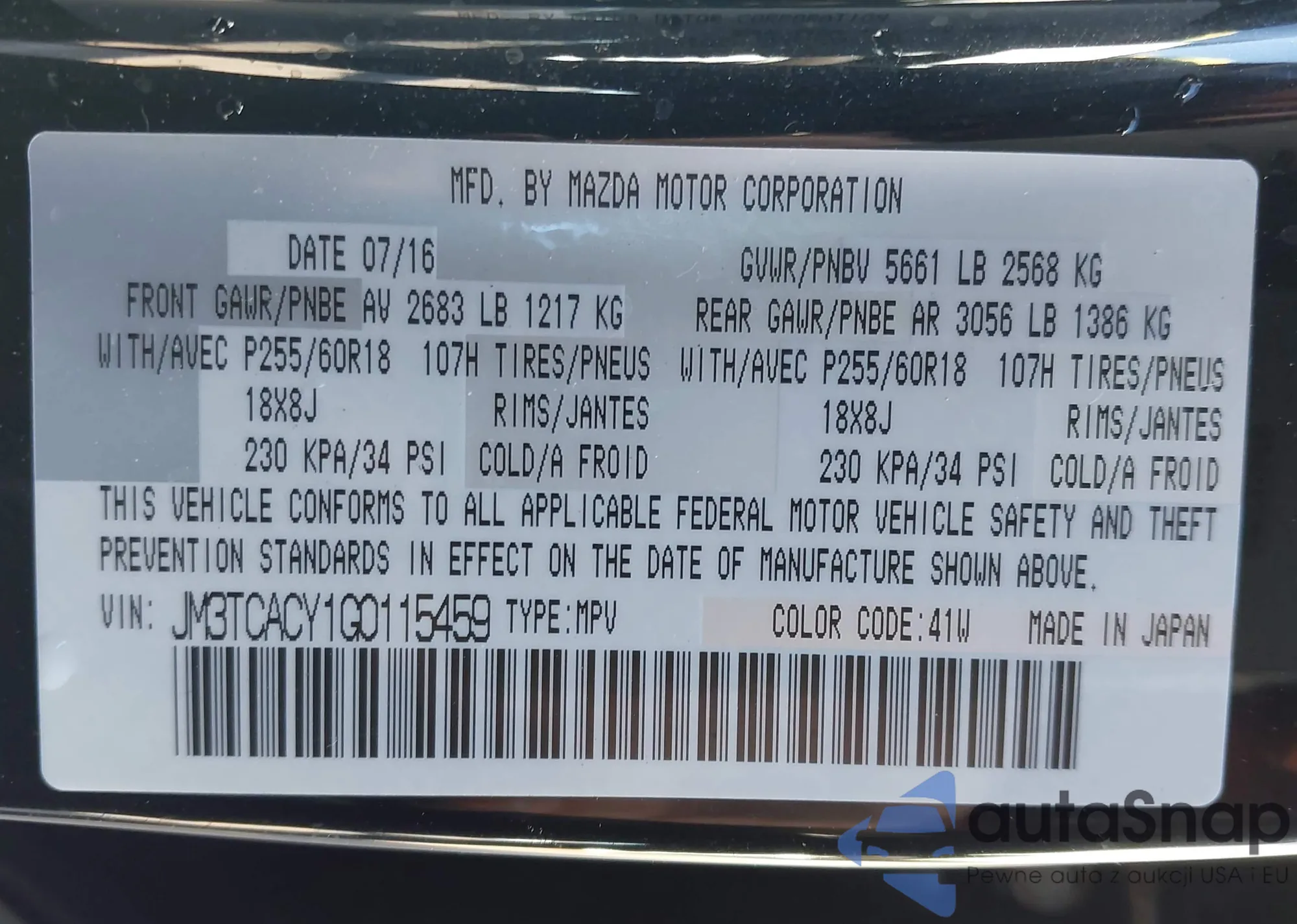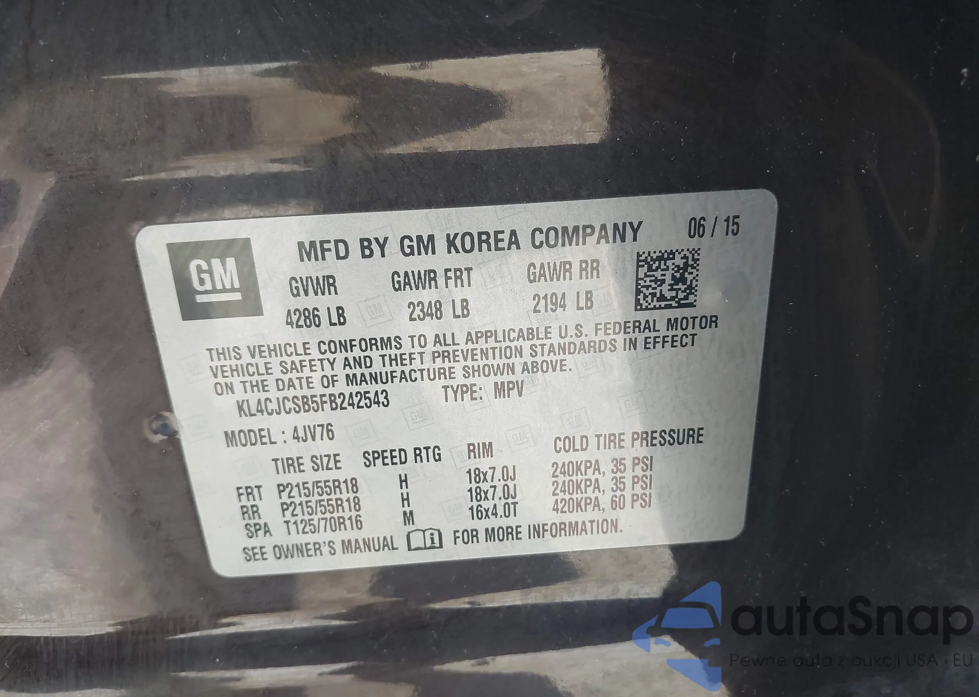 • VIN KL4CJCSB5FB242543