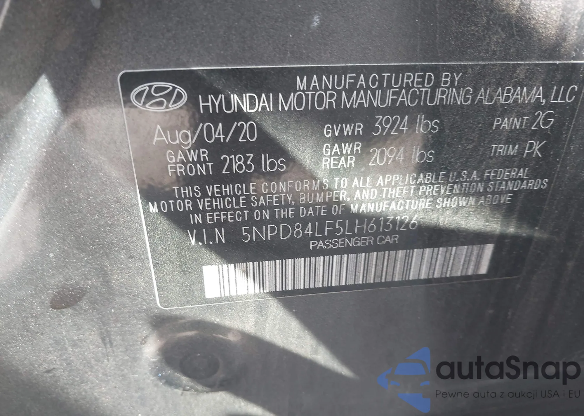 • VIN 5NPD84LF5LH613126